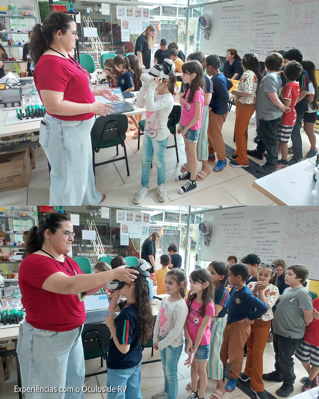 Também interagiram com o Óculos de Realidade Virtual e foram à "caça aos mentioritos" com o detector de metais. O astro Sol apareceu timidamente por entre as nuvens, o que possibilitou sua observação com os óculos especiais de eclipse. E mesmo com a Lua escondida atrás das nuvens, as crianças usaram o telescópio para observar as árvores e flores.