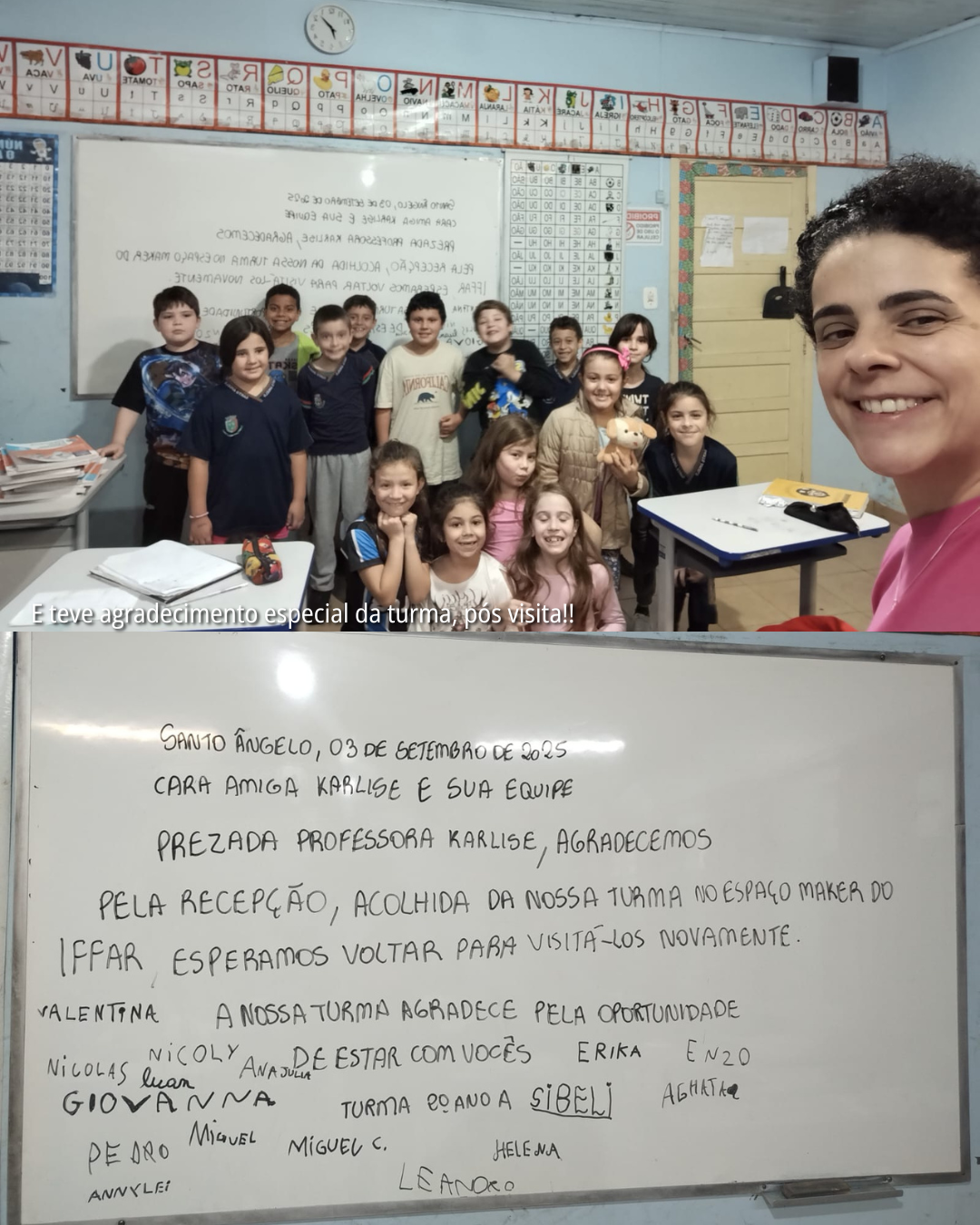 E um agradecimento “espacial” às professoras e monitoras da EMEF Liberato Salzano pela visita ao campus e ao projeto.