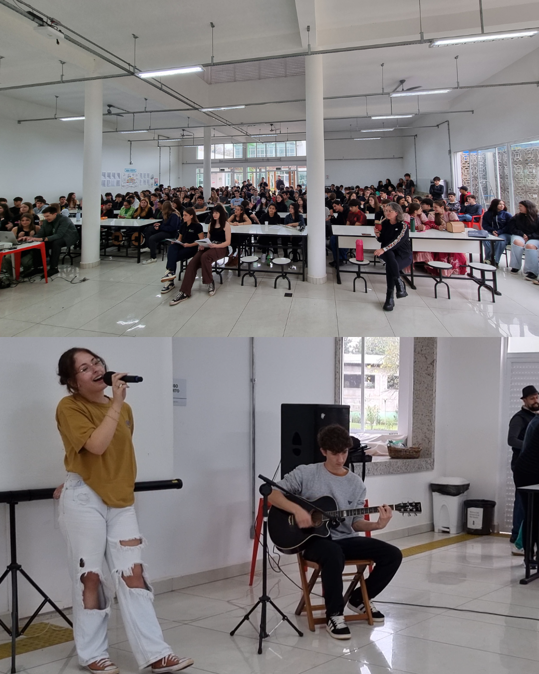No último dia 15/09/2025 realizou-se no Centro de Convivência do IFFar Campus Santo Ângelo a X Mostra Cultural, momento em que se revelaram muitos talentos dos cursos técnicos integrados da instituição. Organizada pelo Núcleo de Arte e Cultura (NAC) do Campus, em parceria com a Assistência Estudantil, a Mostra Cultural Local tem como objetivo promover a integração dos estudantes do IFFar por meio de atividades artístico-culturais, permitindo o acesso às fontes da cultura nacional e regional. Além disso, busca aprofundar as discussões sobre a inserção da cultura como uma atividade pedagógica constante nas ações de ensino, pesquisa e extensão. A Mostra contempla diversas expressões de arte, como performances, música, dança, teatro, artes manuais e audiovisuais e, neste ano, contou com a presença do senhor Elton Gilberto Backes, professor de Literatura e Artista Plástico; da escritora Lissandra Valéria Portella Nuñez Motta, do dançarino William Fernandes e da professora de Arte Vanessa Dias para realizar a avaliação dos trabalhos. As criações artísticas selecionadas participarão da Mostra Cultural do IFFar, nos dias 09 e 10 de outubro, no Campus Júlio de Castilhos, onde estarão reunidos todos os selecionados de cada Campi do IFFar.