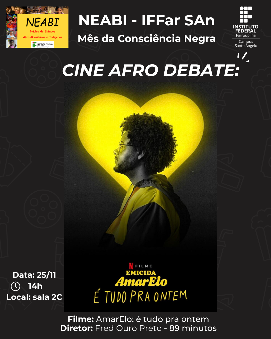 Em celebração ao Mês da Consciência Negra, o NEABI – Núcleo de Estudos Afro-Brasileiros e Indígenas convida toda a comunidade acadêmica para participar do CineAfro Debate, um ciclo de exibições e conversas sobre obras que retratam a cultura, a resistência e as lutas da população negra.