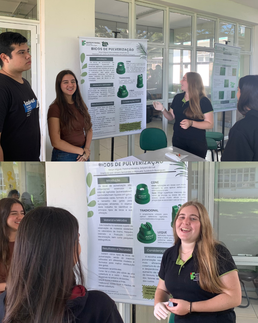 A turma do 2º Ano do Curso Técnico em Agricultura (AGR21) apresentou, no dia 24/11/2025, os trabalhos da Prática Profissional Integrada - PPI, onde os estudantes simularam um dia de campo com apresentações na área de Fruticultura (Orientados pela professora Manuela Sulzbach Rodrigues) e Mecanização Agrícola (orientados pelo professor Airam Fernandes).