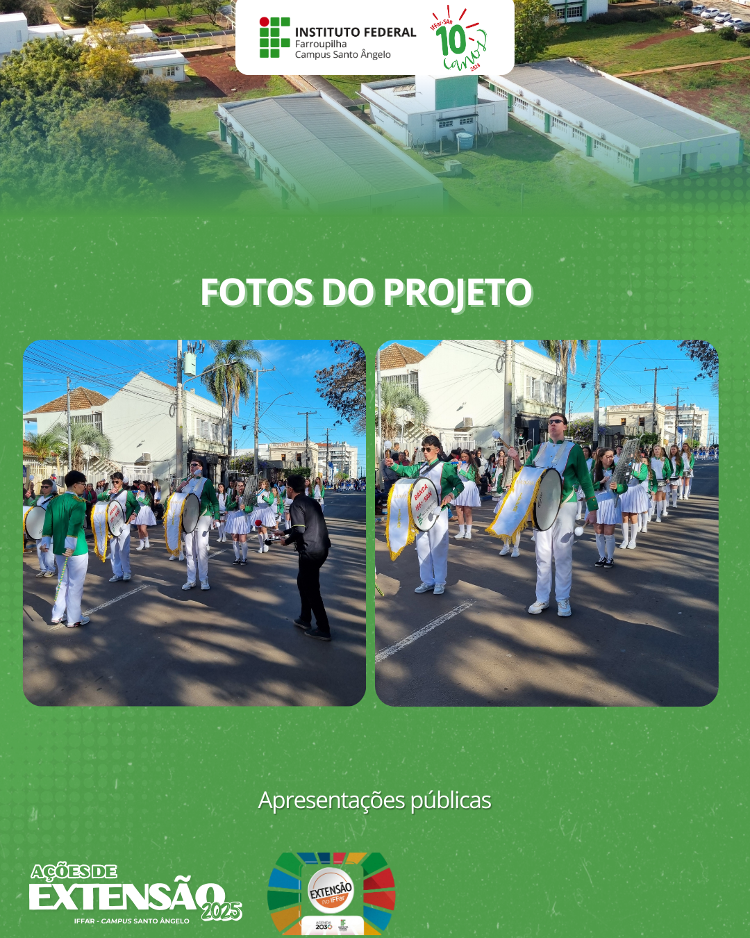 As apresentações realizadas em 2025 confirmam o êxito da formação integral proporcionada aos discentes e a relevância do projeto para a comunidade. Agradecemos o empenho de cada aluno na concretização desta iniciativa.