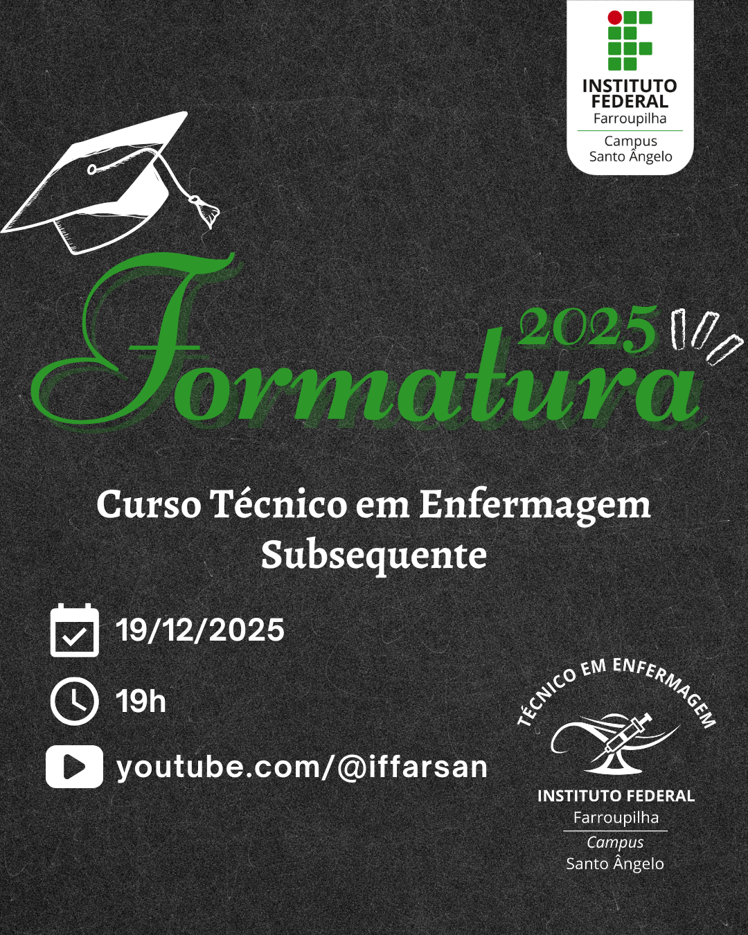 IFFar – Campus Santo Ângelo realizará transmissões das Formaturas 2025 dos Cursos Técnicos