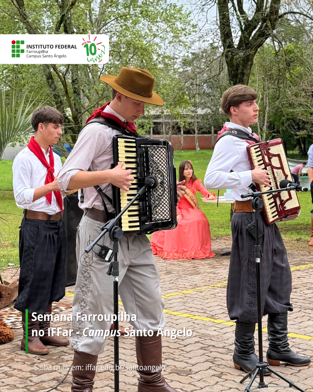 A realização da Semana Farroupilha 2025 reforçou o compromisso do IFFar – Campus Santo Ângelo com a preservação da cultura regional, promovendo momentos de convivência, pertencimento e valorização das tradições gaúchas no ambiente educacional.