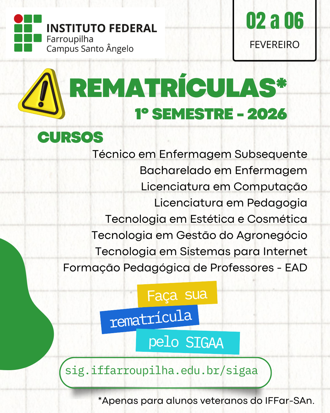 Já está aberto o período de rematrícula online para estudantes veteranos dos cursos técnicos e de graduação do IFFar - Campus Santo Ângelo!
