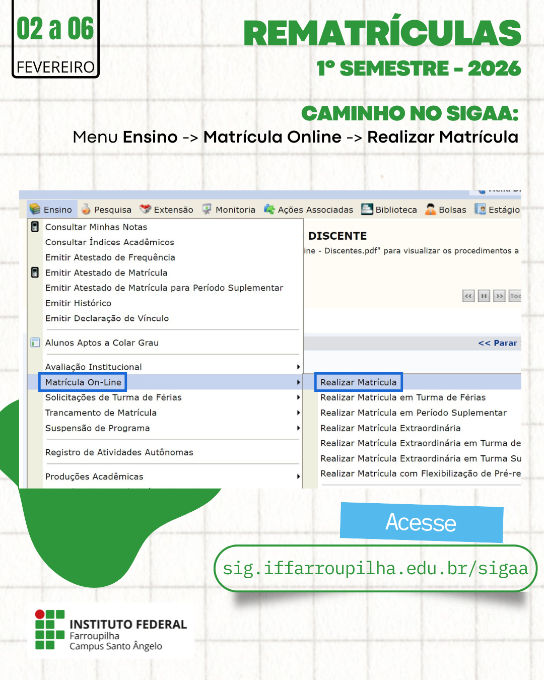 Rematrículas Online 2026/1 – IFFar - Campus Santo Ângelo