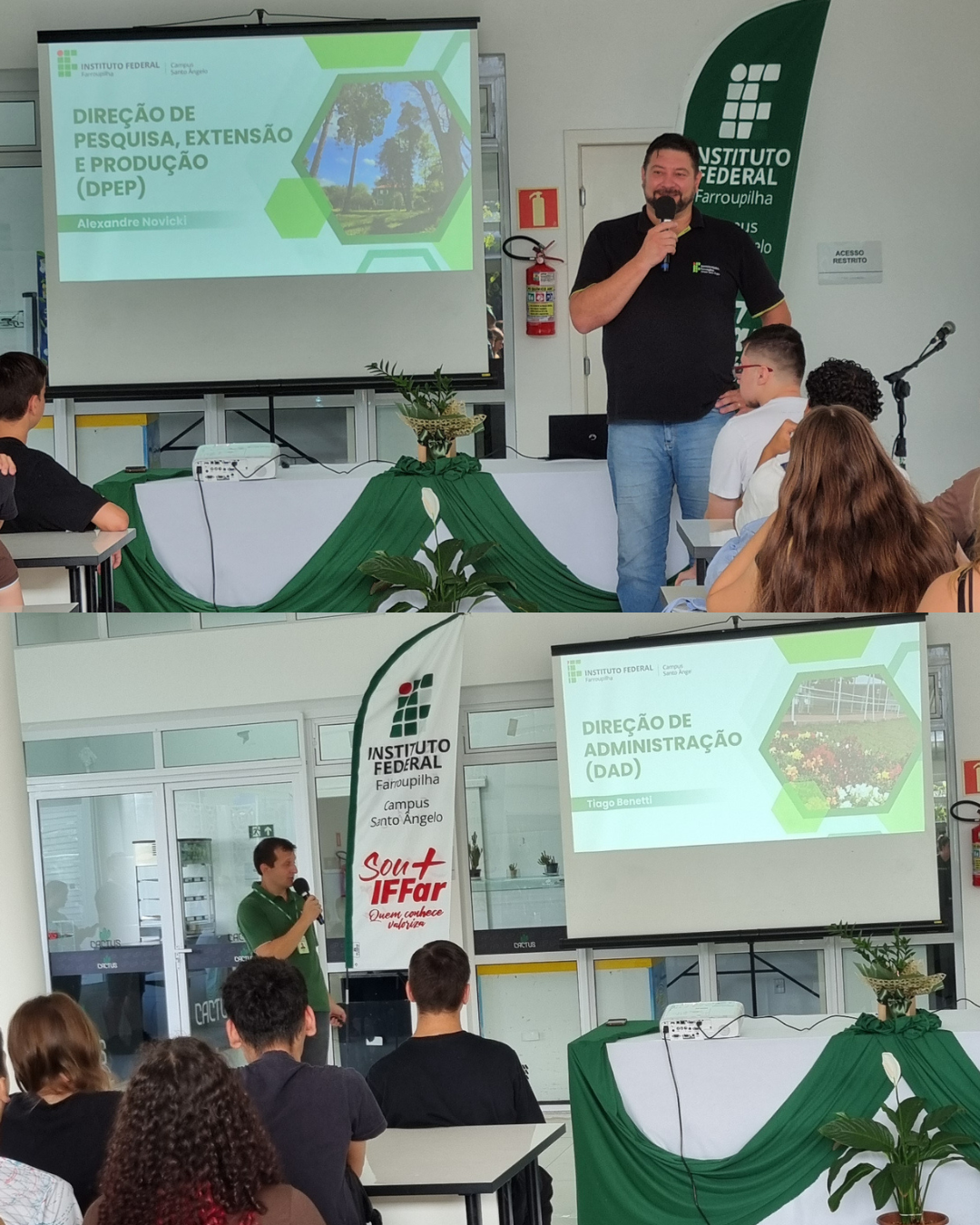 Na sequência as turmas dos Cursos Técnicos Integrados em Agropecuária, Informática e Administração já tiveram o primeiro contato com seus coordenadores, receberam seus horários e tiraram dúvidas específicas.