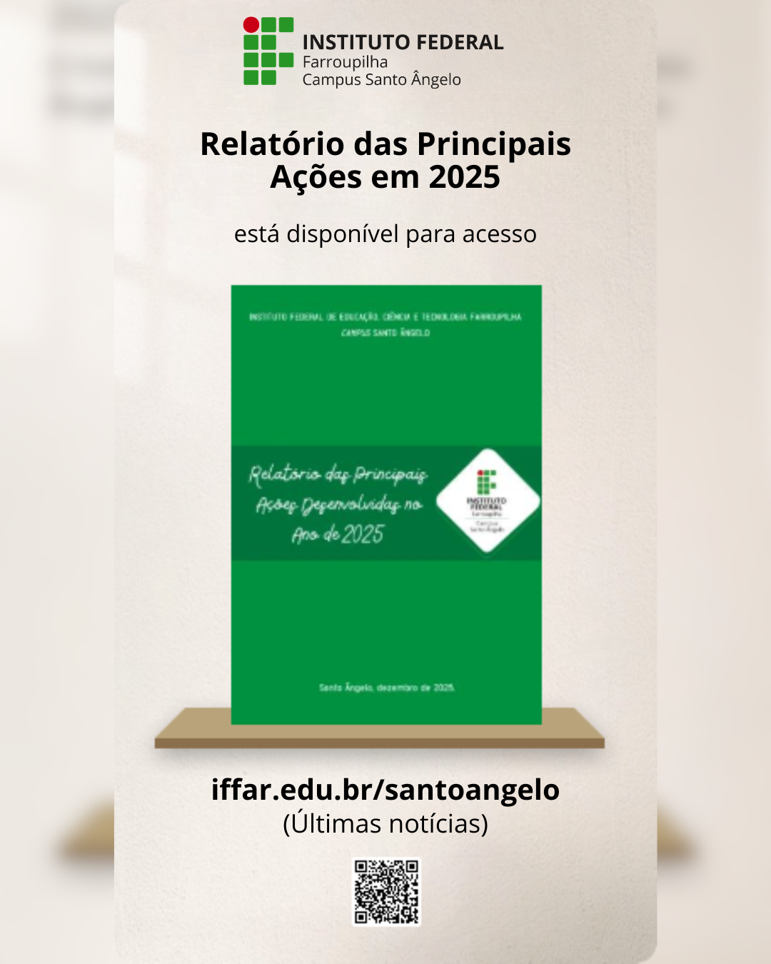 O Instituto Federal Farroupilha – Campus Santo Ângelo apresenta à comunidade acadêmica e regional o relatório anual de 2025, documento que reúne as principais ações realizadas ao longo do ano nas áreas de ensino, pesquisa, extensão e gestão administrativa.