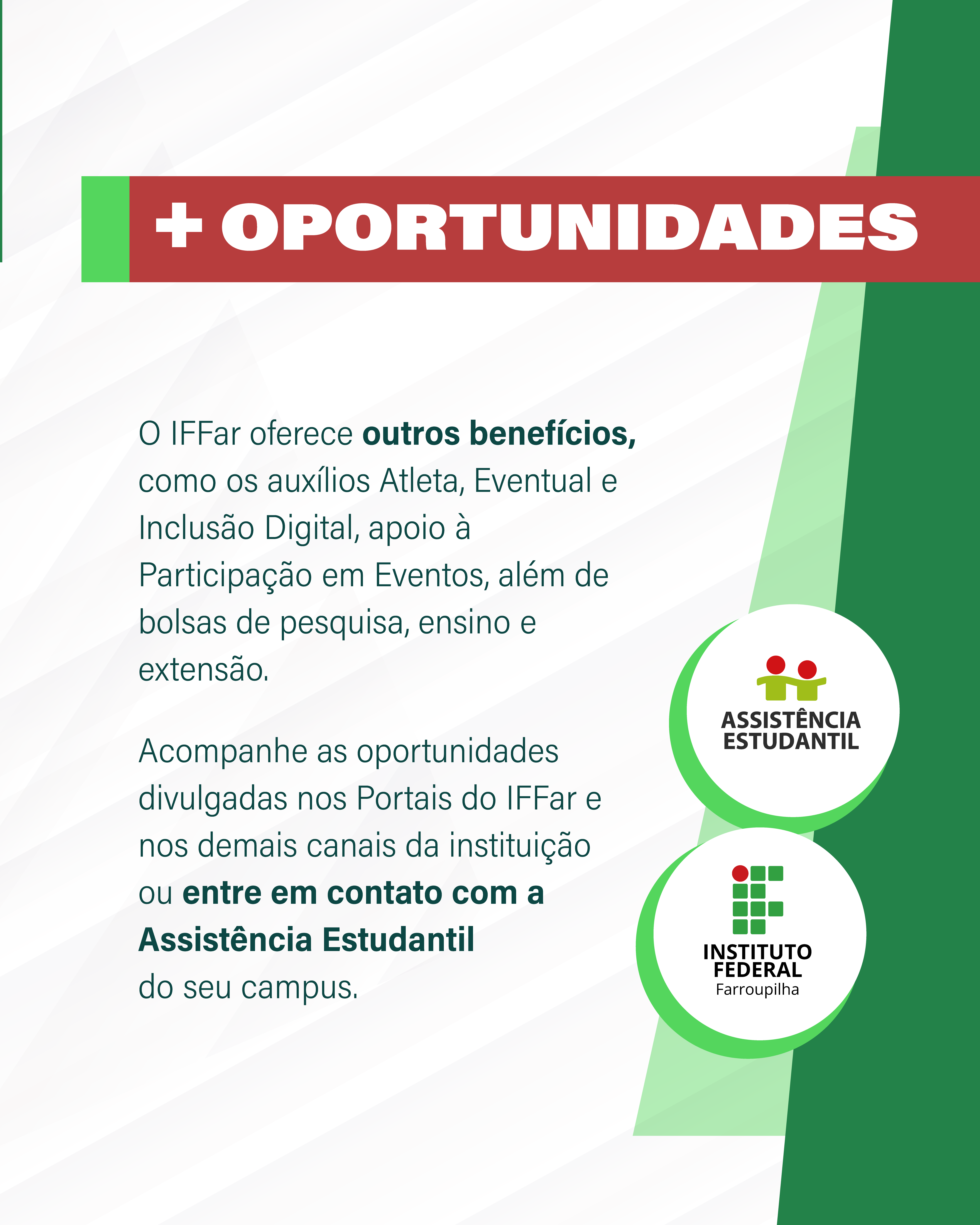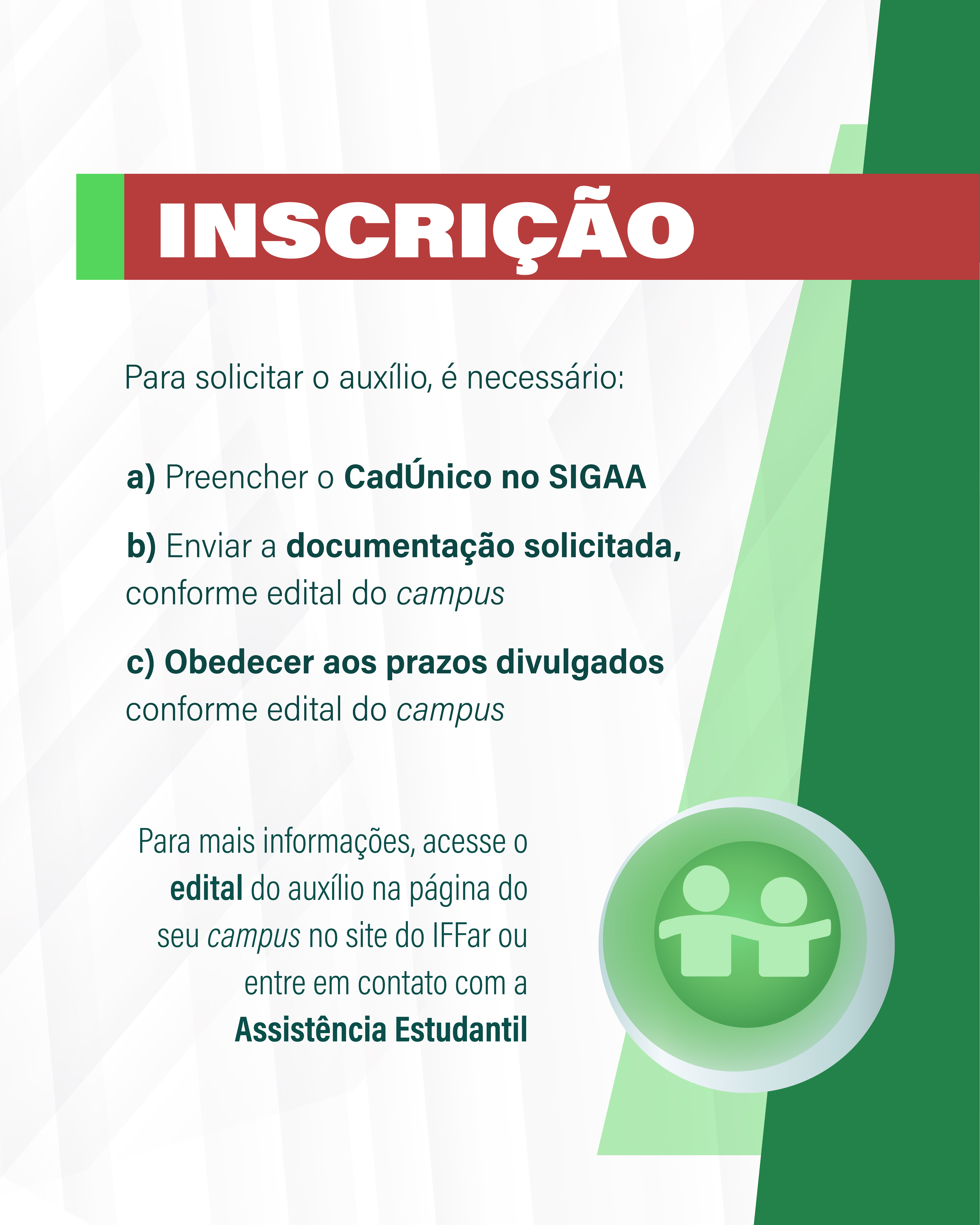 Navegue pelas abas abaixo e conheça as principais informações sobre o Auxílio Permanência do IFFar. As informações também estão disponíveis nas imagens.
