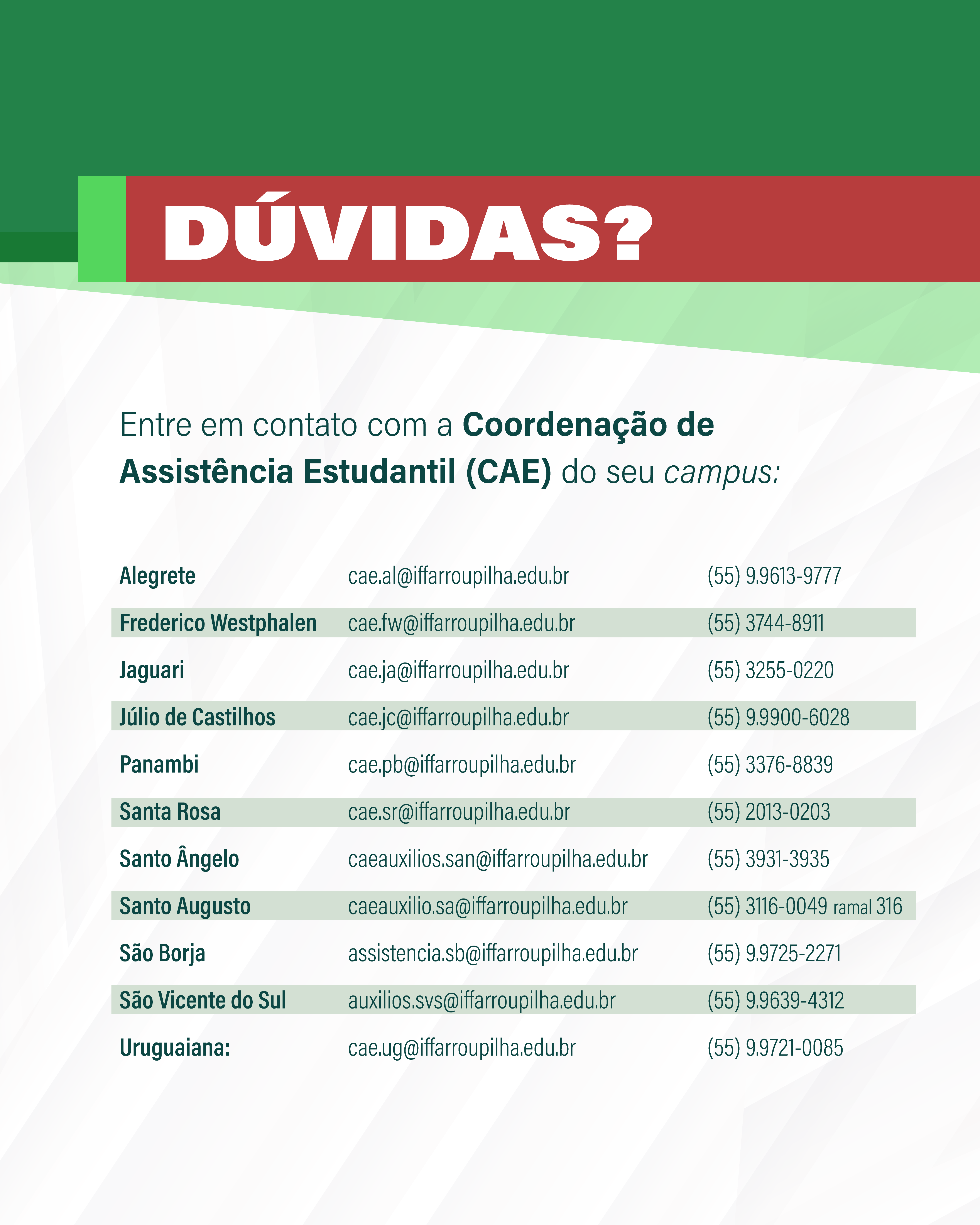 As datas e links de editais publicados pelo Campus Santo Ângelo estão listados abaixo. No final desta página, você pode conferir um resumo das principais informações relacionadas ao Auxílio Permanência do IFFar.