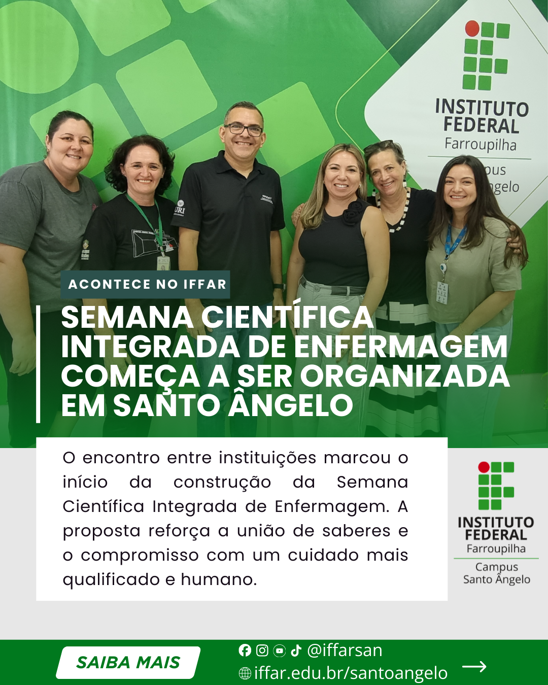 A proposta tem como objetivo fortalecer a integração entre as instituições de ensino que ofertam cursos de Enfermagem em Santo Ângelo — IFFar, URI, SENAC e UNOPAR — promovendo a troca de conhecimentos, experiências e práticas formativas.
