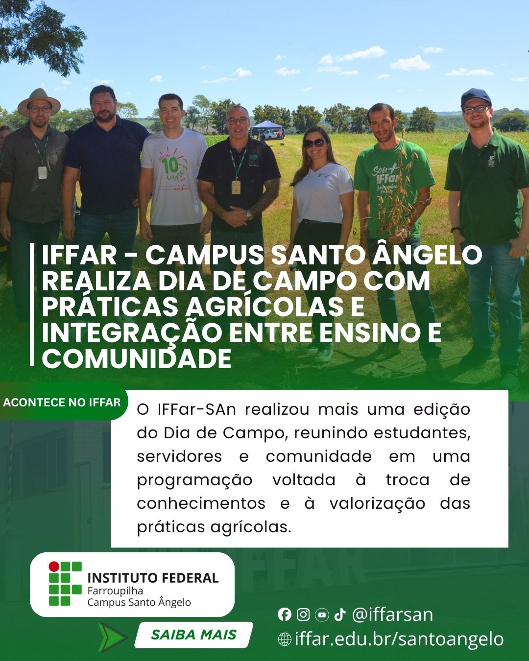 O Instituto Federal Farroupilha – Campus Santo Ângelo (IFFar-SAn) realizou, na manhã desta sexta-feira, 20 de março de 2026, mais uma edição do Dia de Campo, reunindo estudantes, servidores e comunidade em uma programação voltada à troca de conhecimentos e à valorização das práticas agrícolas.