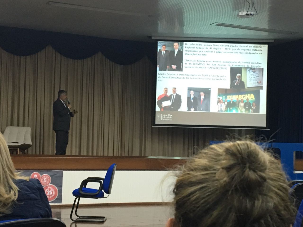 Os estudantes das turmas do 1º e 3º semestres do Curso Técnico em Gerência de Saúde participaram na terça-feira, dia 23 de maio de 2017, de atividade de extensão voltada para qualificação do ensino e da aprendizagem, ao integrarem o público que prestigiou o evento da Universidade Regional Integrada do Alto Uruguai e Missões - URI Santo Ângelo: XX SIMPÓSIO DE ESTUDOS JURÍDICOS, cuja temática da noite versou sobre: O IMPACTO DA JUDICIALIZAÇÃO DA SAÚDE NO SUS E NA SAÚDE, apresentada pelo palestrante Roberto Canquerini da Silva, Vice-Presidente do Conselho Regional de Farmácia do Rio Grande do Sul e tendo como debatedora Angelita Maria Maders, Defensora Pública do RS.