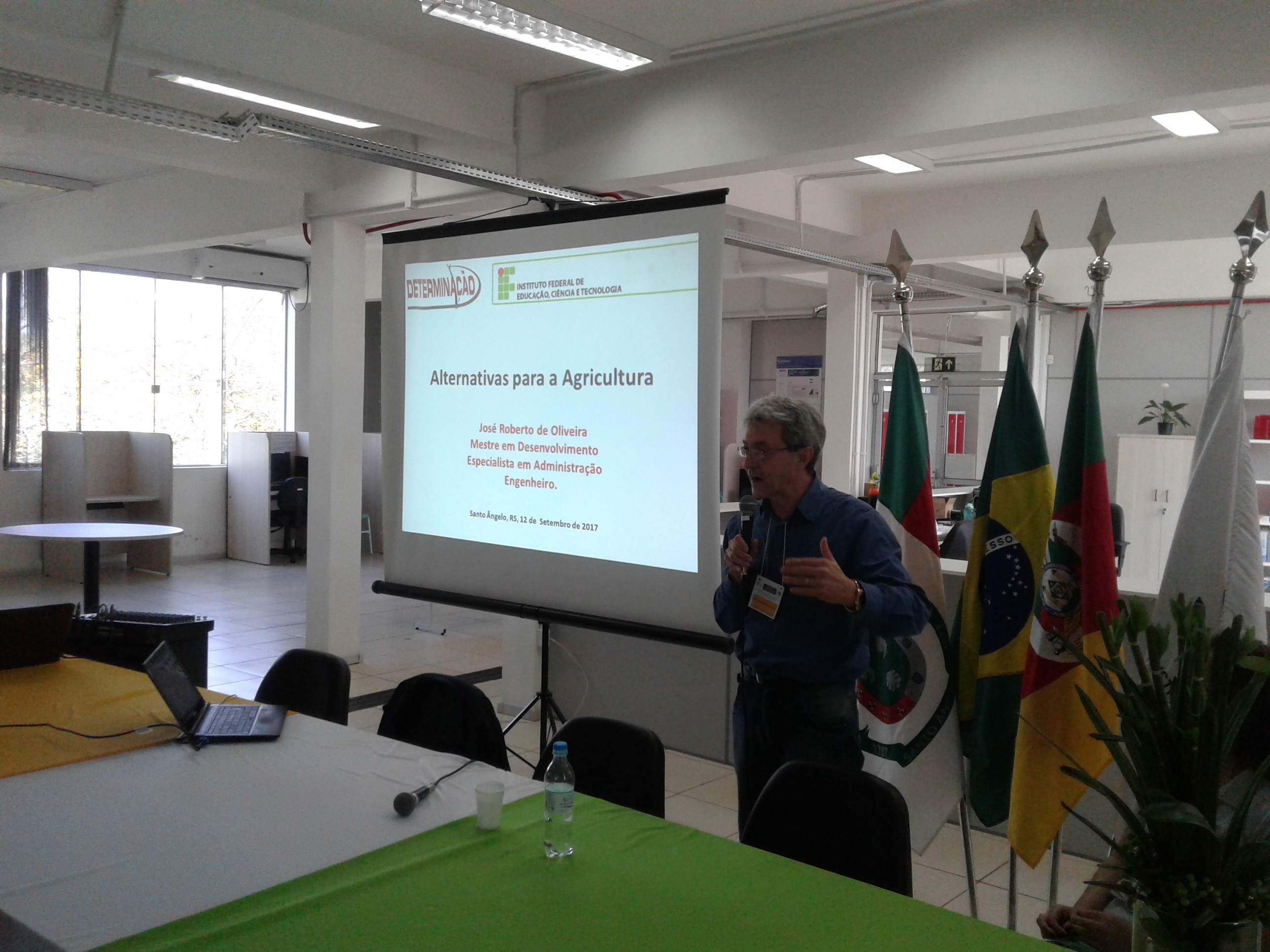 A seguir o Me. José Roberto de Oliveira nos brindou com a palestra sobre “Potencialidades para a agricultura regional”, enfocando na motivação para o jovem permanecer no meio rural e mostrando alternativas para isso.