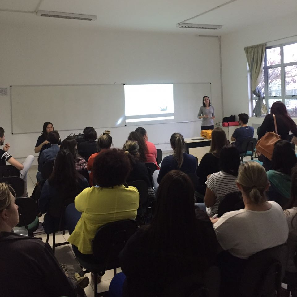 No dia 23 esteve presente a ex-aluna Joana Derllin abordando sua trajetória profissional, com posterior prática de yoga, uma das técnicas realizadas em sua clínica, depois de especializações na área.