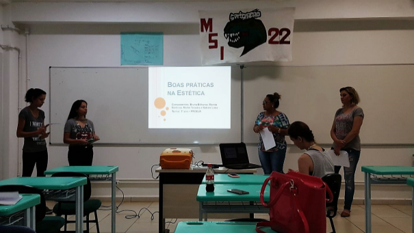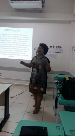 Na turma do 2º ano: as apresentações dos alunos do segundo ano do PROEJA realizaram-se no último dia 08/11, intituladas de: Protocolos de atendimentos, onde os alunos foram divididos em grupos e abordaram os temas de limpeza de pele para acne simples, massagem modeladora para FEG (Fibro Edema Gelóide), cauterização e descoloração capilar. Foram construídos pelos discentes, organogramas de cada técnica, os quais abrangeram o passo a passo de cada procedimento, com a finalidade de aprofundar os estudos com relação aos protocolos estéticos, fundamentais para a atuação profissional.