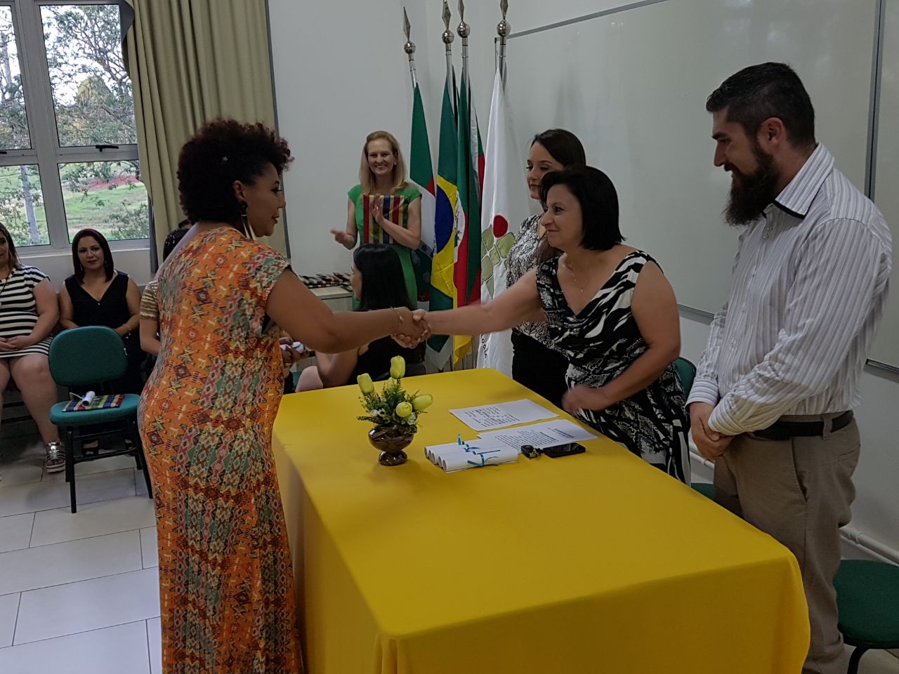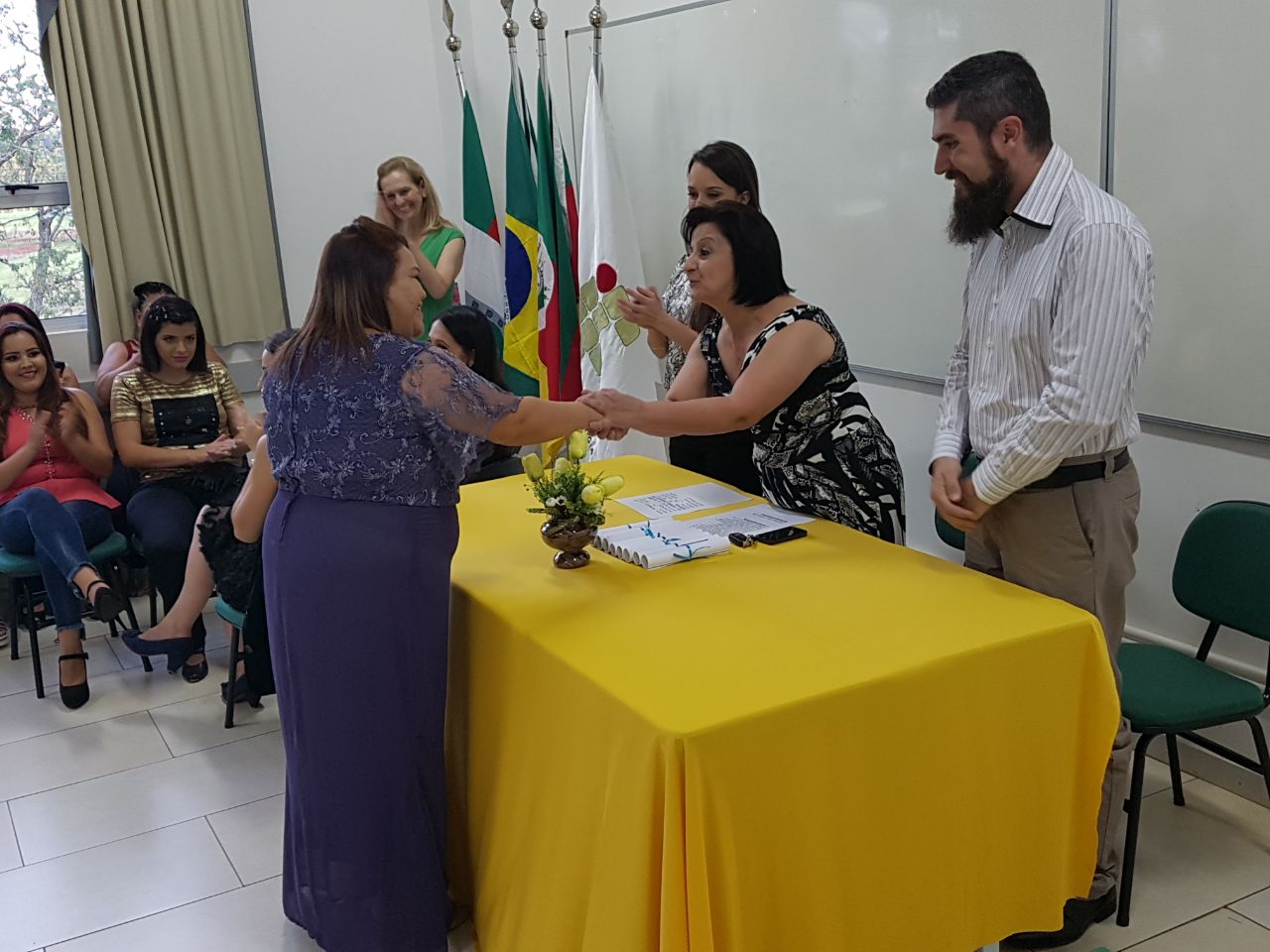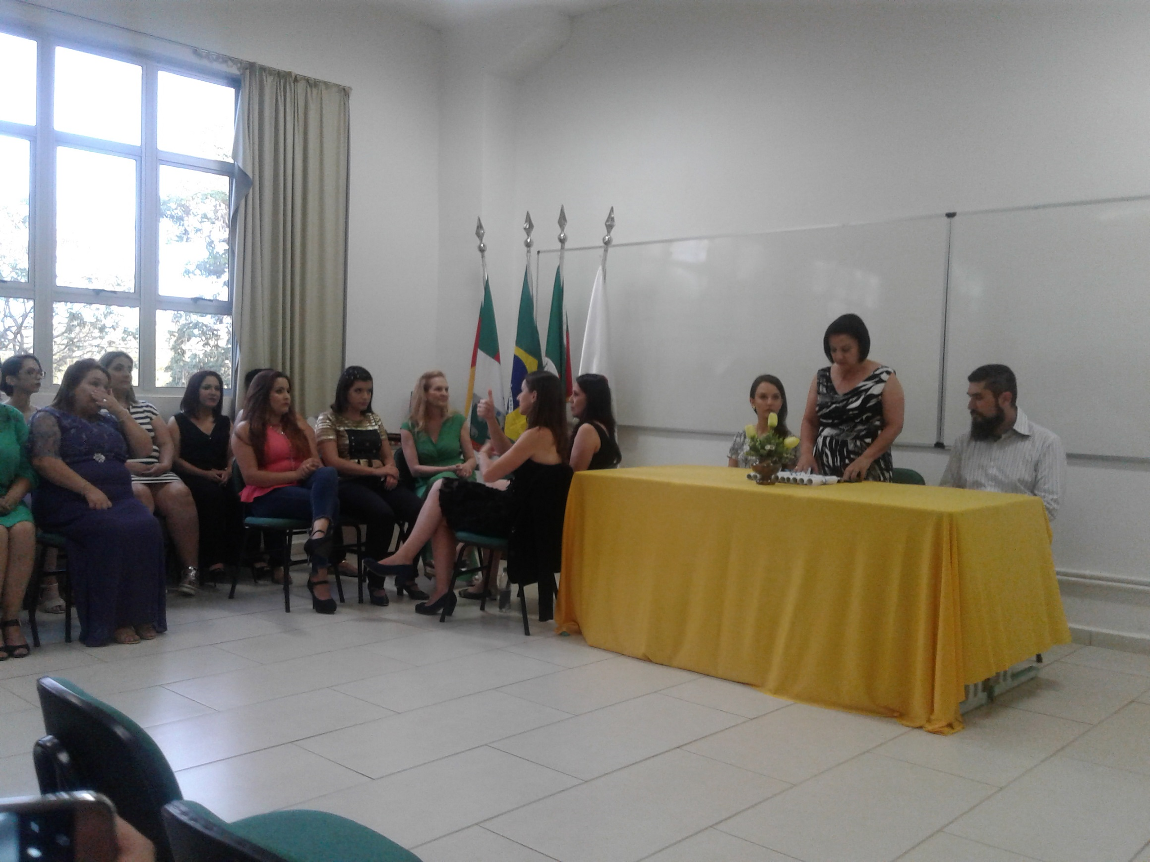 Todas as formandas receberam um mimo, das mãos da Diretora de Ensino Eliane Felden, que fez a entrega, em nome dos Diretores e do Conselheiro da turma, Alexandre Novicki.