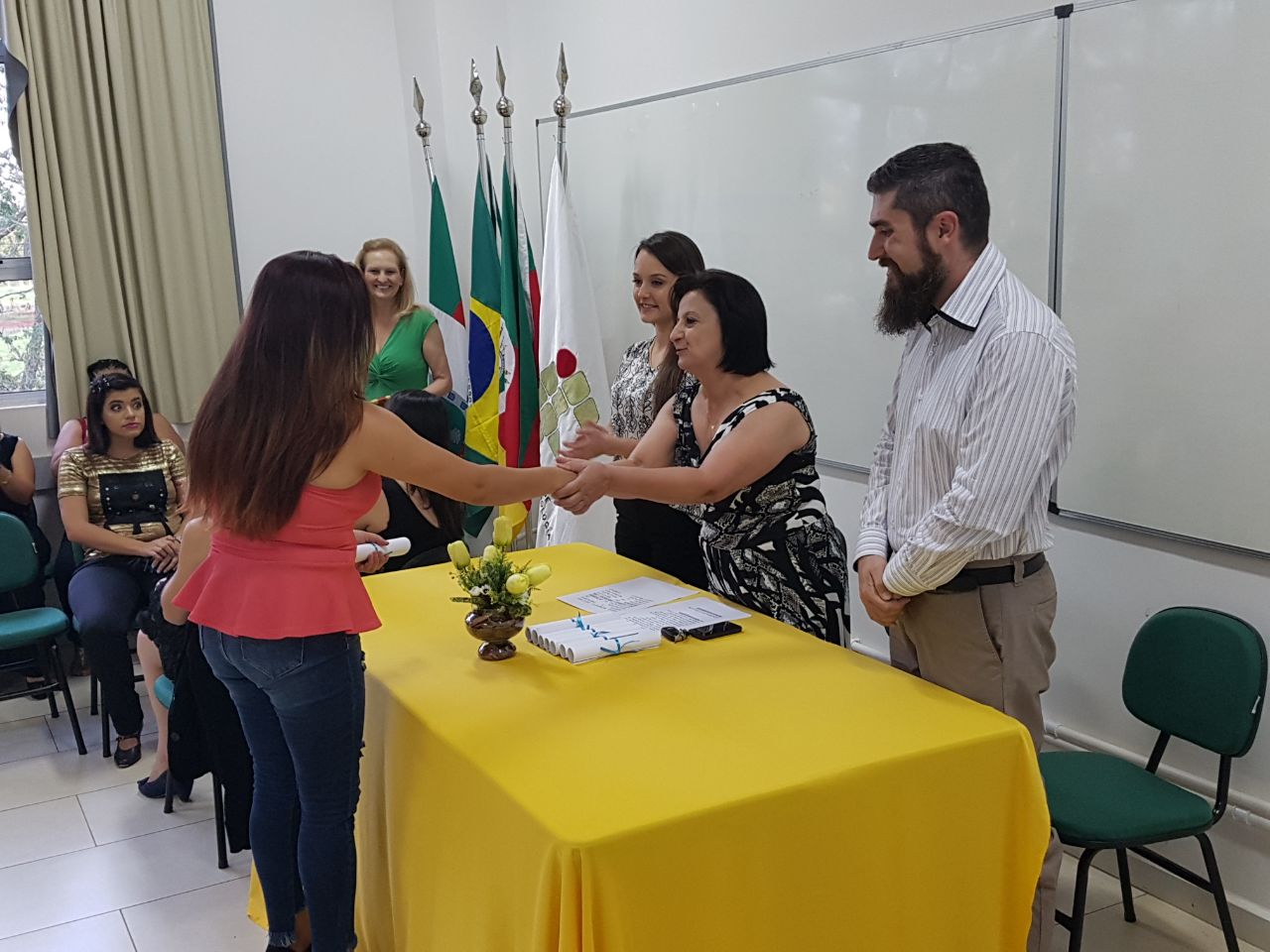 Na Solenidade, 09 concluintes receberam o título de Técnico em Estética, sendo elas : Aline Ferreira do Nascimento, Enedina Jocelaine Bueno, Fernanda da Silva Rodrigues, Jéssyca Rittiele dos Santos, Juliana da Rosa, Karine Teixeira, Rosilei da Silva Machado, Rosiméri do Carmo da Cunha e Véra Lúcia de Freitas Teixeira.