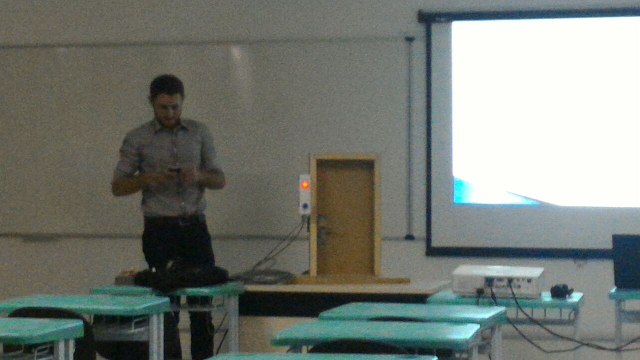 Na sequência, o acadêmico Robson M. Sobrinho, apresentou sua pesquisa “Sistema de Fechadura Eletrônica a partir da Plataforma Arduíno", orientado pelo professor Fábio Albiero.