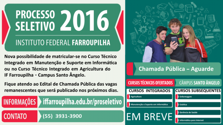 A Direção de Ensino do Instituto Federal de Educação, Ciência e Tecnologia - Campus Santo Ângelo torna pública que haverá em breve nova oportunidade de matrículas através de chamada pública. Se você deseja estudar no Instituto Federal sua oportunidade é agora.
