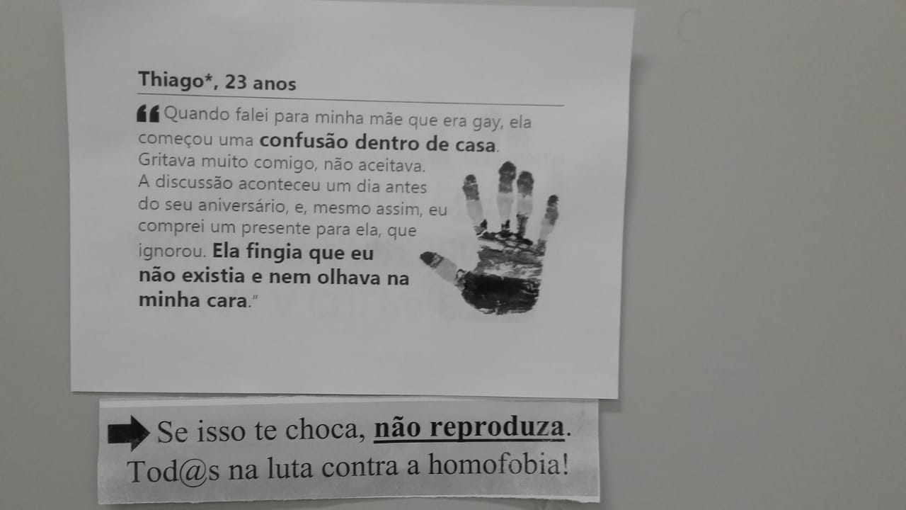 Durante a semana seguinte, o Núcleo realizou atividades visando reflexão e combate às diferentes violências que o público LGBT sofre no seu dia a dia. Primeiramente foram fixadas pelos prédios do campus frases que os LGBTs ouvem no seu cotidiano, o que permitiu reflexões de estudantes e servidores que se depararam com os cartazes. No dia 17 de maio, Dia Mundial da Luta contra a LGBTfobia, o campus foi prestigiado com a apresentação de uma Drag Queen representada pelo aluno João Lang, do terceiro ano do Curso Técnico Integrado em Estética (PROEJA).