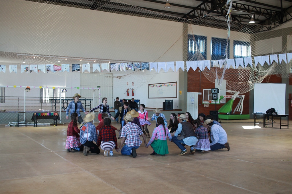 O Grêmio Estudantil Honestino Guimarães, do IFFar - Campus Santo Augusto, promoveu no dia 12 de julho a sua já tradicional Arraiá. A festa realizada no Ginásio de esportes da Instituição contou com disputa de quadrilhas e escolha do casal do milho, além da venda de pipoca, cachorro-quente, pizzas, trufas de chocolate, quentão sem álcool e refrigerantes.