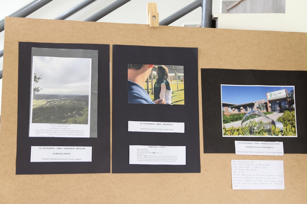 Nesse dia também puderam ser conferidas as exposições do II Festival de Arte Cultural e Literatura do Campus Santo Augusto, (música, artes visuais, dança folclórica e contemporânea, cinema, literatura e teatro), que acontece de 30/08 a 14/09, com objetivo principal de promoção e difusão da produção artística dos alunos da instituição, diálogo e reconhecimento de bens culturais e manifestações artísticas tradicionais da cidade de Santo Augusto, e a promoção de um espaço de experiência de leitura e aproximação com a arte.