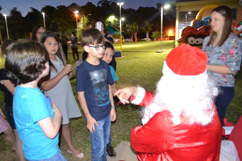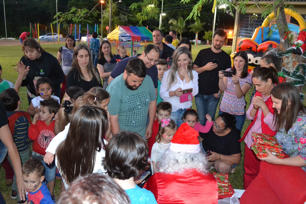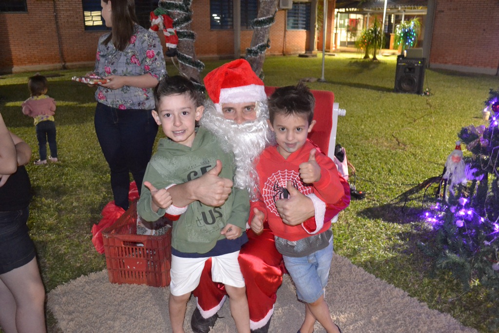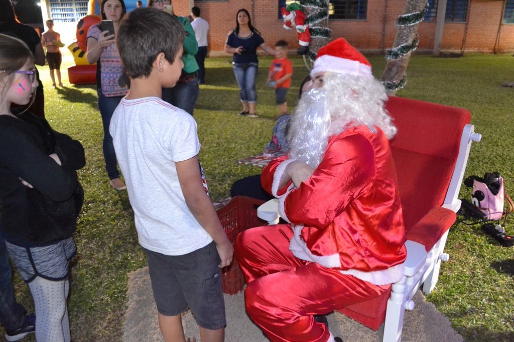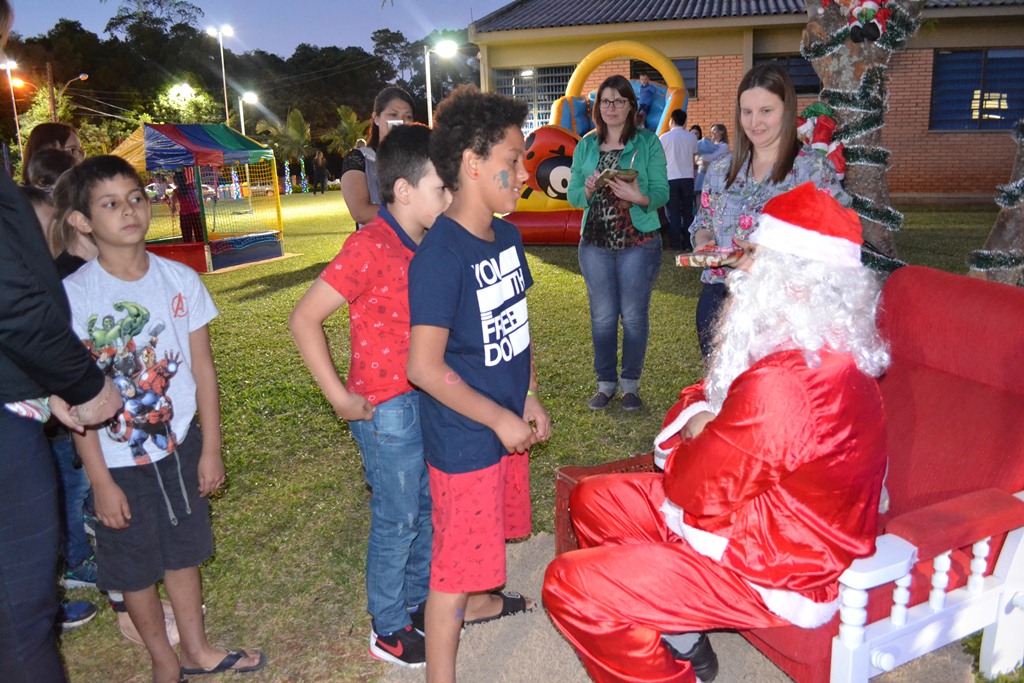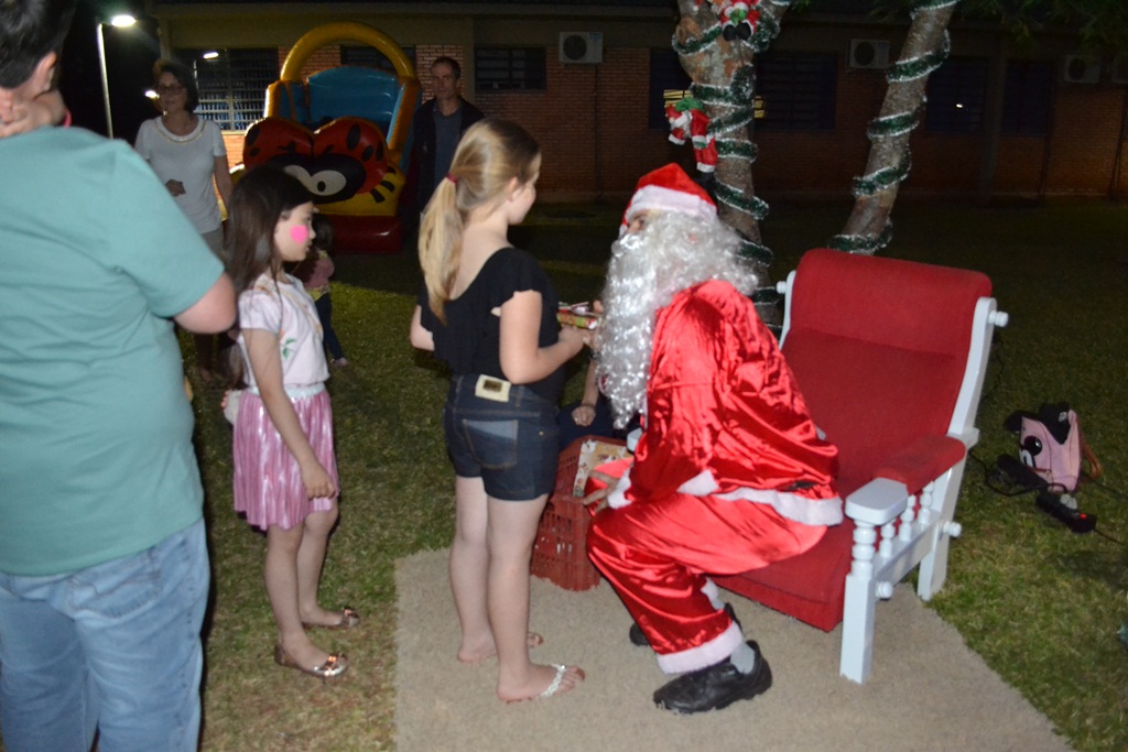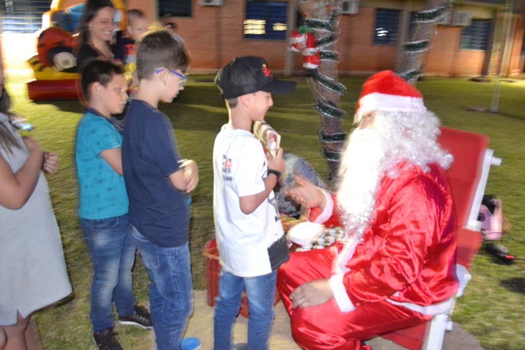 O evento teve início às 18h, com muita brincadeira, pintura no rosto, brinquedos infláveis, picolé, pipoca, cachorro-quente e por fim ao anoitecer, a tão esperada Chegada do Papai Noel, que distribuiu presentes, alegrando e divertindo a criançada.