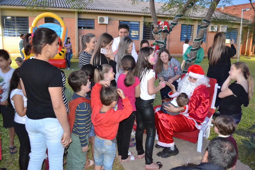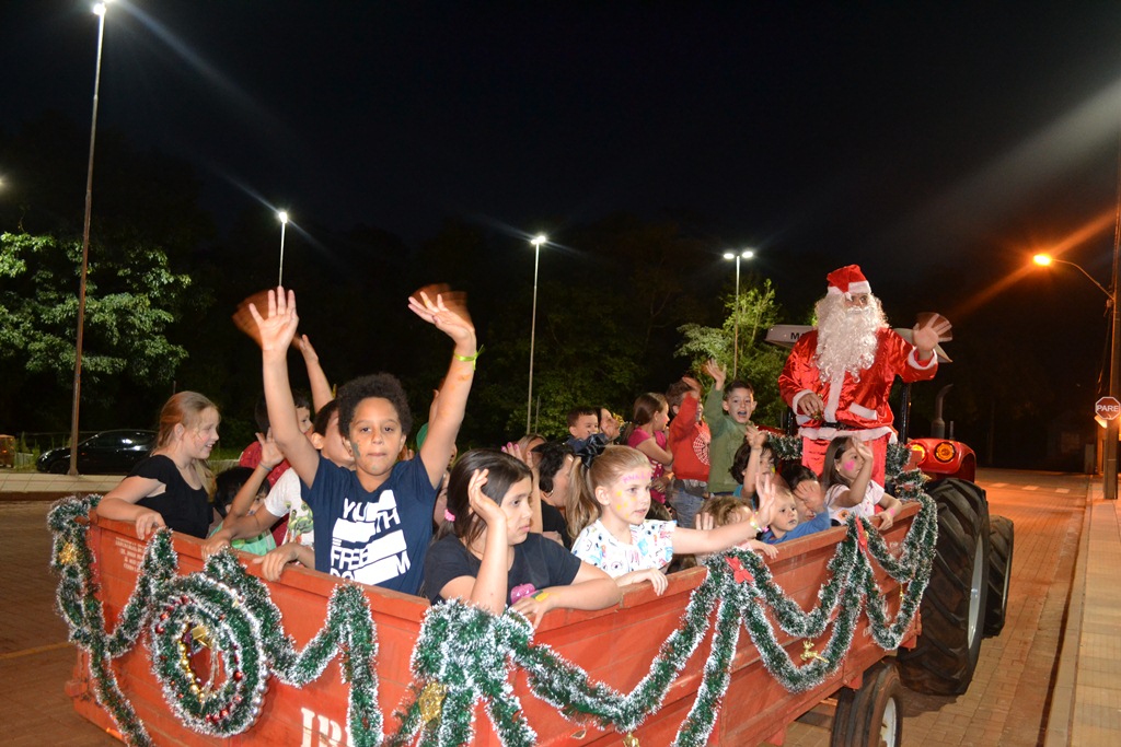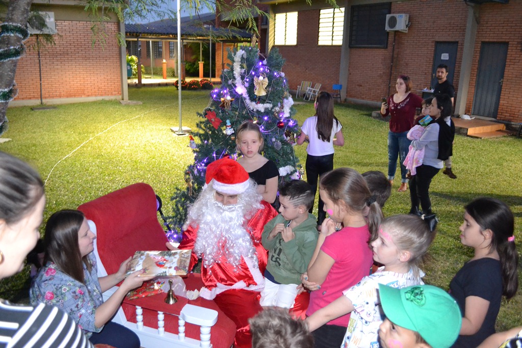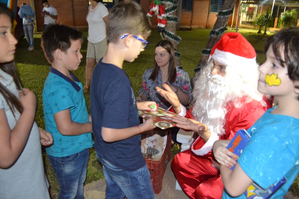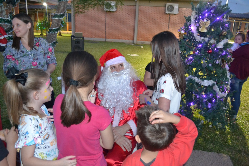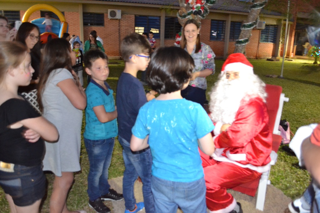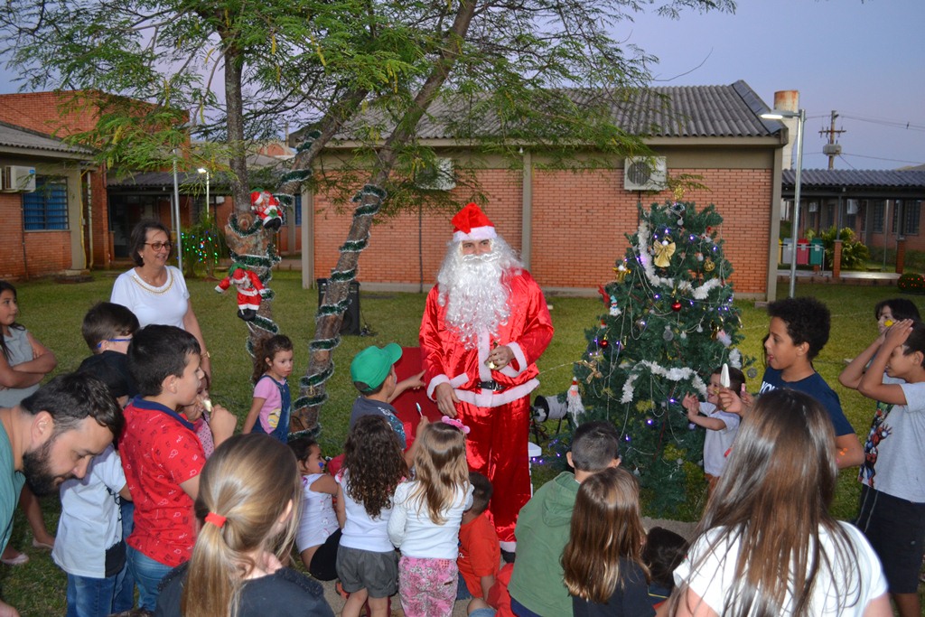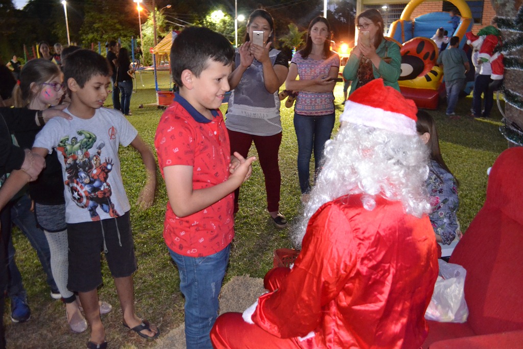 O evento teve início às 18h, com muita brincadeira, pintura no rosto, brinquedos infláveis, picolé, pipoca, cachorro-quente e por fim ao anoitecer, a tão esperada Chegada do Papai Noel, que distribuiu presentes, alegrando e divertindo a criançada.