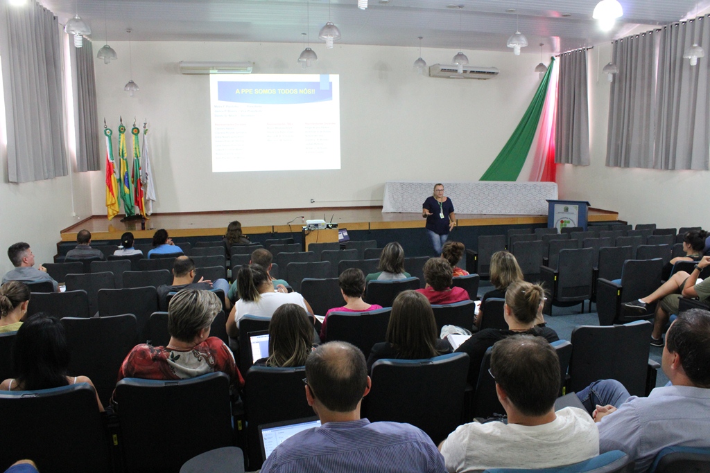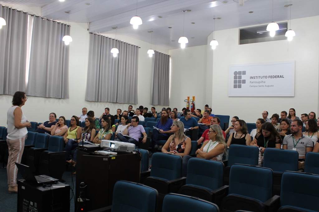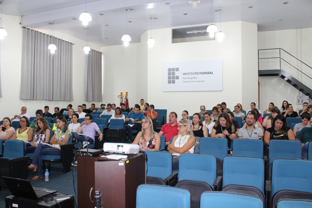 Após o café, os servidores ligados ao ensino participaram de uma reunião pedagógica no auditório, coordenada pela Direção de Ensino, onde foram repassadas orientações sobre o primeiro semestre letivo. Durante a tarde, aconteceram reuniões de Colegiado dos Cursos Técnicos Integrados ao Ensino Médio, sob a coordenação dos coordenadores de curso.