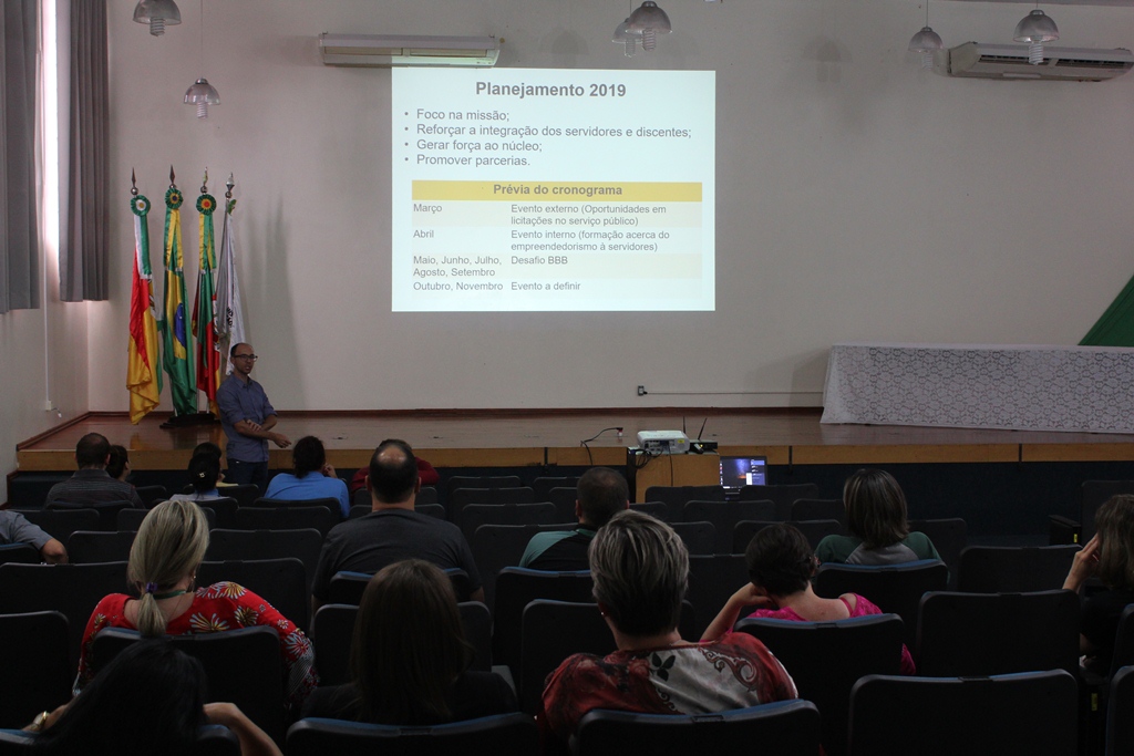 O IFFar – Campus Santo Augusto deu início as atividades letivas 2019, na manhã de ontem, dia 11 de fevereiro, com o retorno dos docentes e Técnicos Administrativos que estavam em férias. Na ocasião, os servidores receberam no hall de entrada da instituição os materiais institucionais 2019 (agenda, calendário e caderno do IFFar), sendo direcionados em seguida para o refeitório para participar do café de boas vindas.