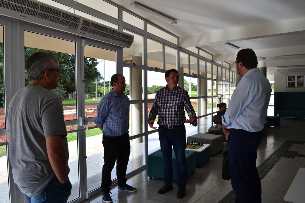 Após a reunião, o empresário Pedro Henrique foi conduzido pelo Diretor de Planejamento e Desenvolvimento Institucional do IFFar – Campus Santo Augusto, Cristiano Nunes dos Santos, para conhecer a instituição, principalmente os laboratórios, salas de aula e a biblioteca.