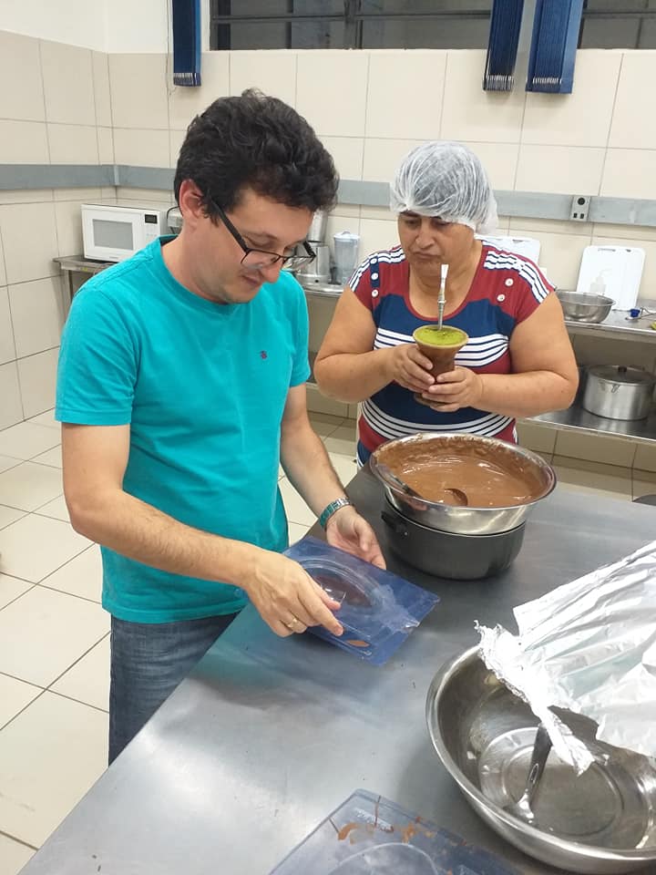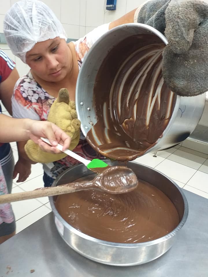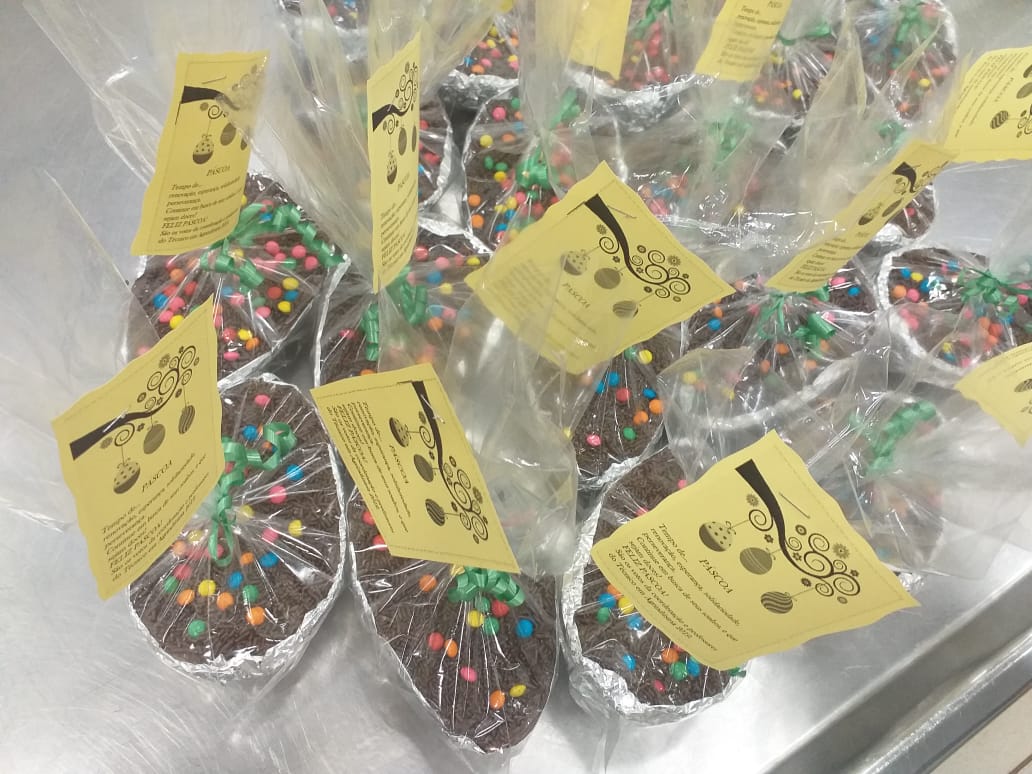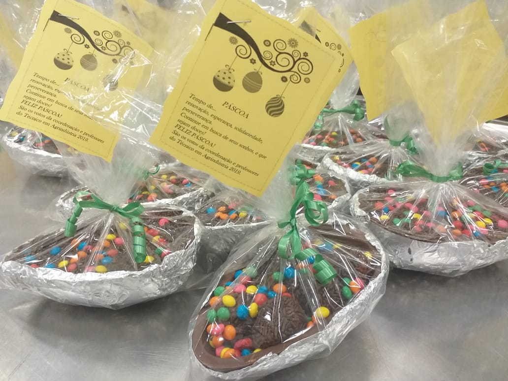Os estudantes do curso técnico em Agroindústria na modalidade EJA – EPT do IFFar – Campus Santo Augusto participaram, de 12 a 17 de abril, de uma oficina de confecção de Ovos de Chocolate, recheados com brigadeiro, ministrada pela professora Janaina Müller.