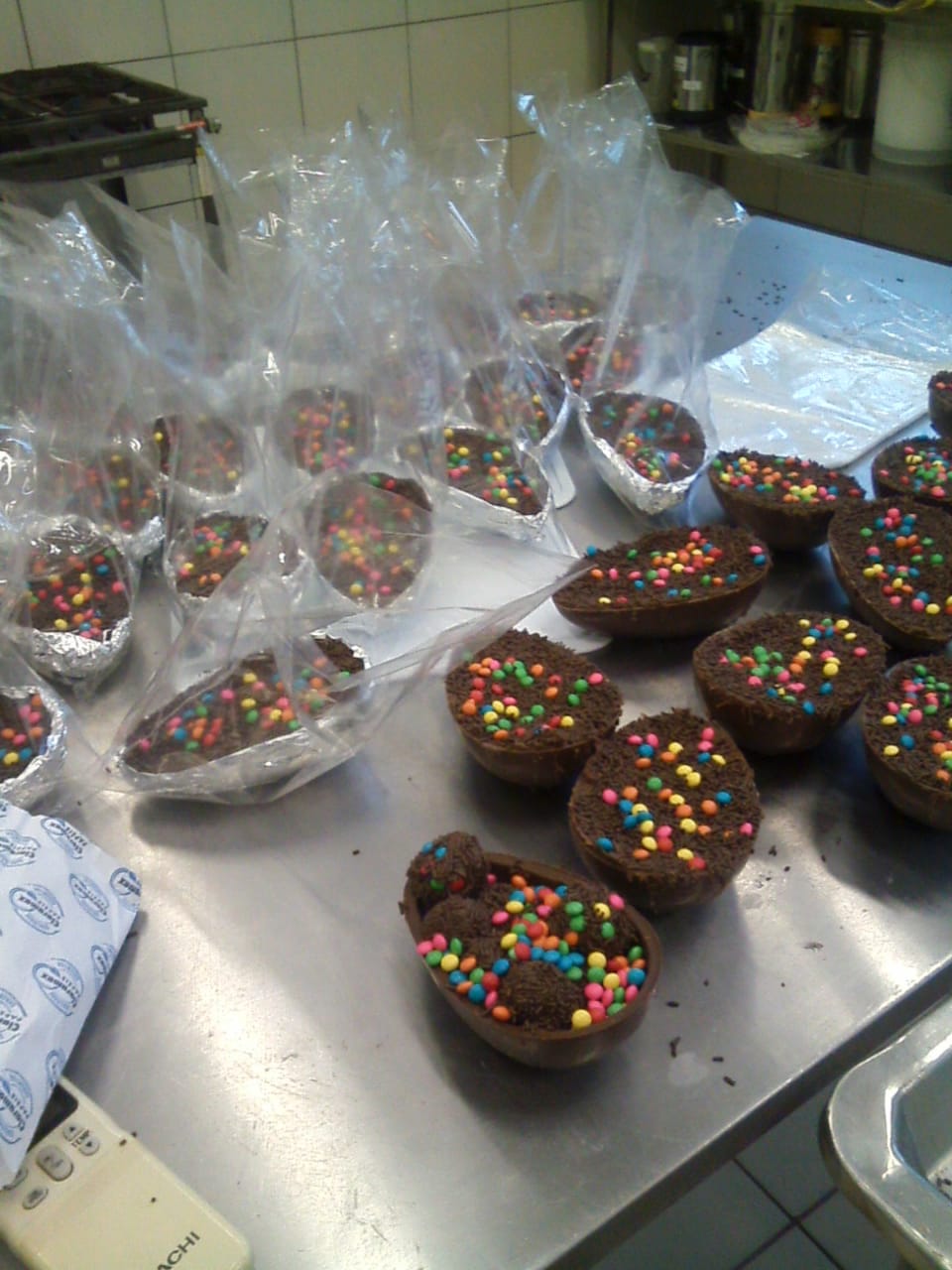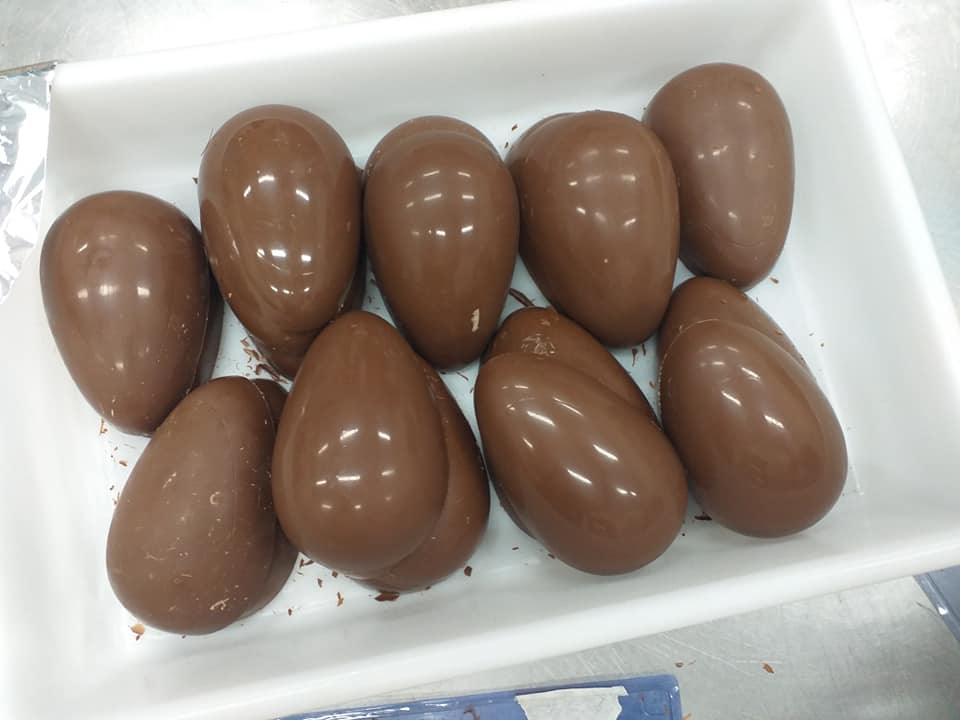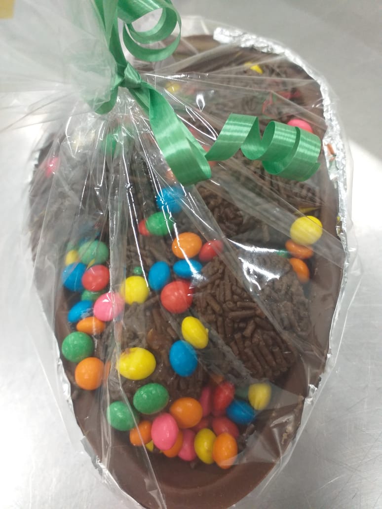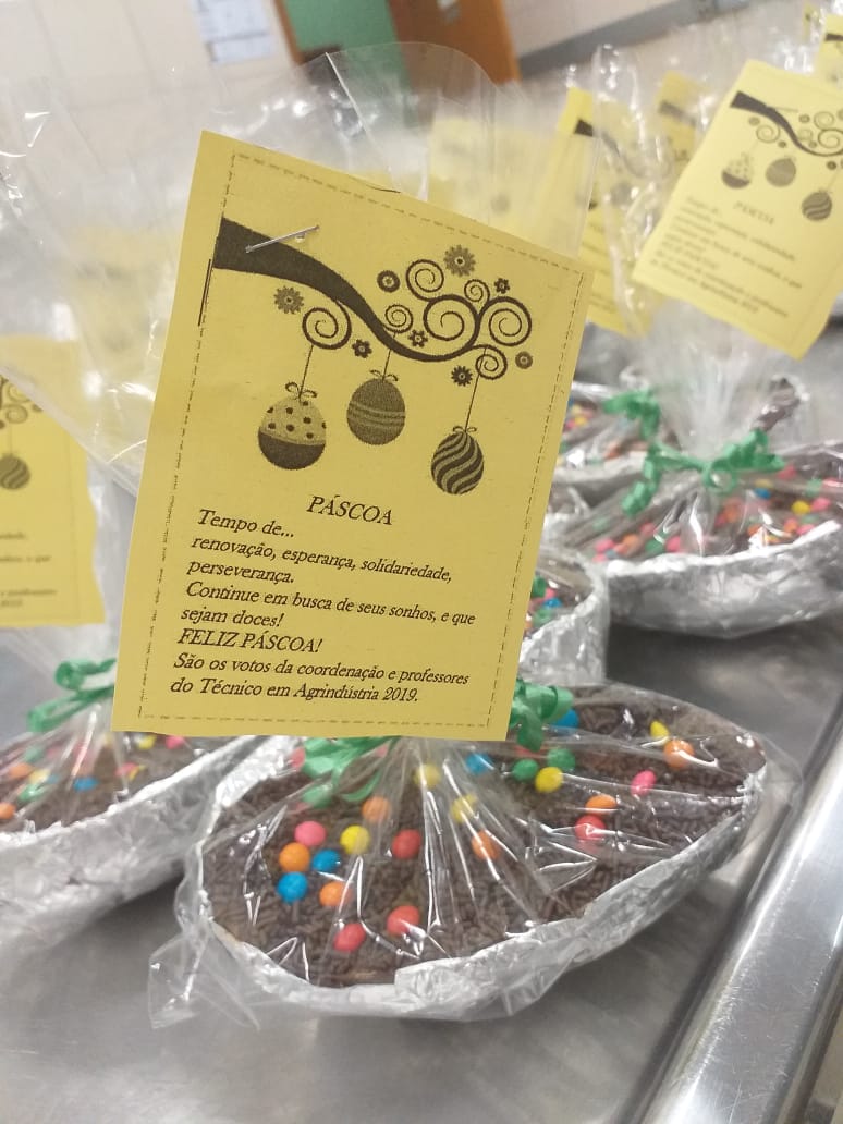 Os estudantes do curso técnico em Agroindústria na modalidade EJA – EPT do IFFar – Campus Santo Augusto participaram, de 12 a 17 de abril, de uma oficina de confecção de Ovos de Chocolate, recheados com brigadeiro, ministrada pela professora Janaina Müller.