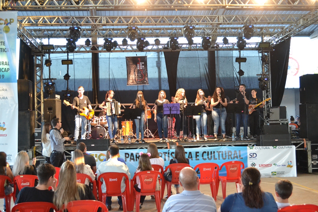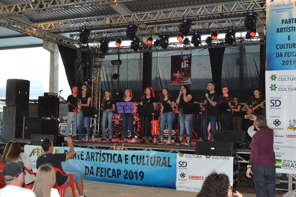 A Banda IF Musical do IFFar - Campus Santo Augusto se apresentou na tarde de quarta-feira, 1º de maio, feriado do dia do trabalhador, no município de Três Passos/RS, na praça de alimentação da FEICAP 2019, que este ano comemora seus 50 anos, com a Edição Ouro (http://www.feicap.com.br/a-feira/).