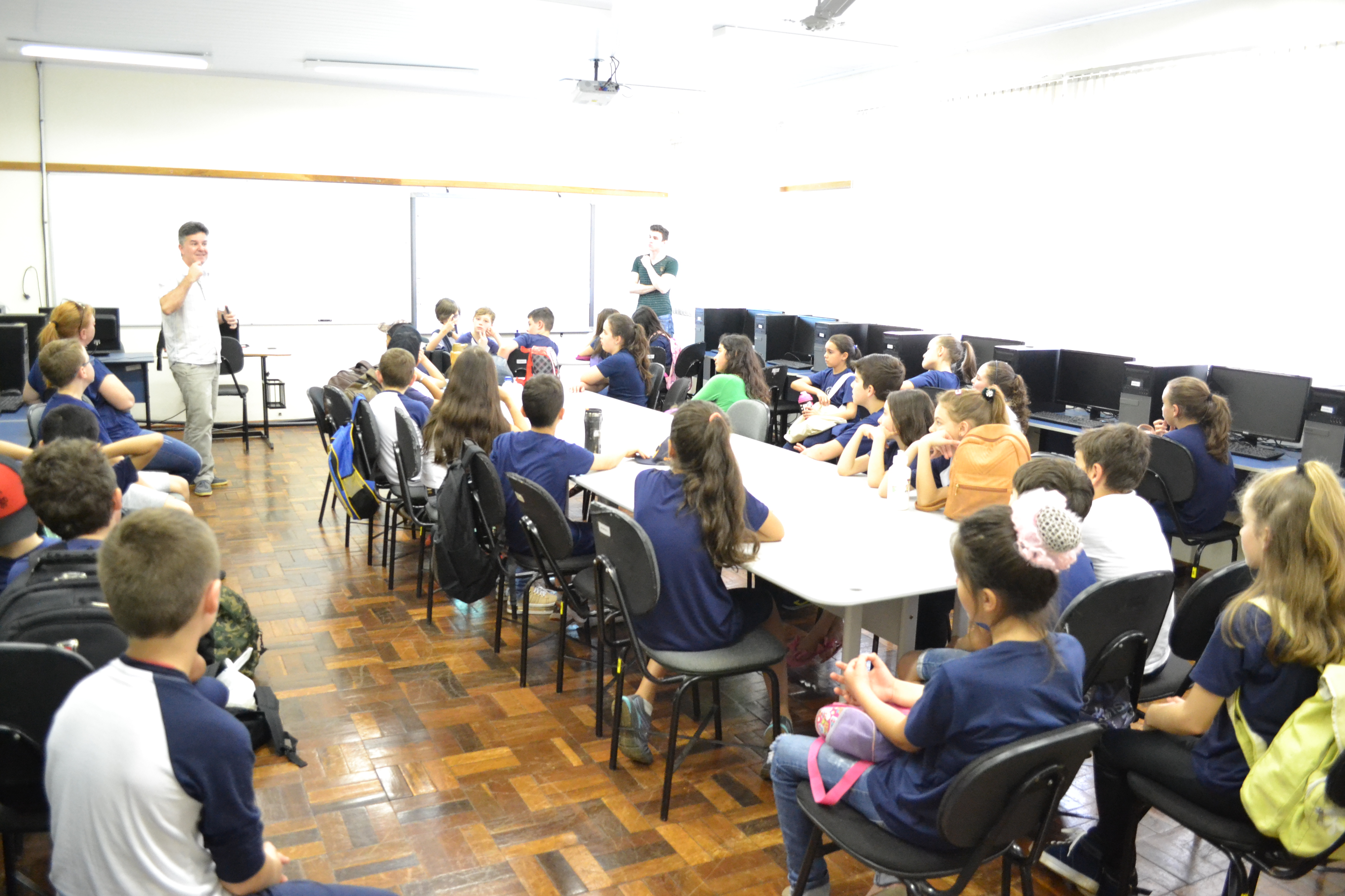 Na tarde desta terça-feira iniciaram as atividades do projeto de extensão integrador “Rompendo fronteiras e integrando culturas: pensamento computacional na educação básica”, realizado em parceria com instituições de Portugal, com a participação de estudantes do 4º ano da Escola Estadual de Ensino Médio Santo Augusto.
