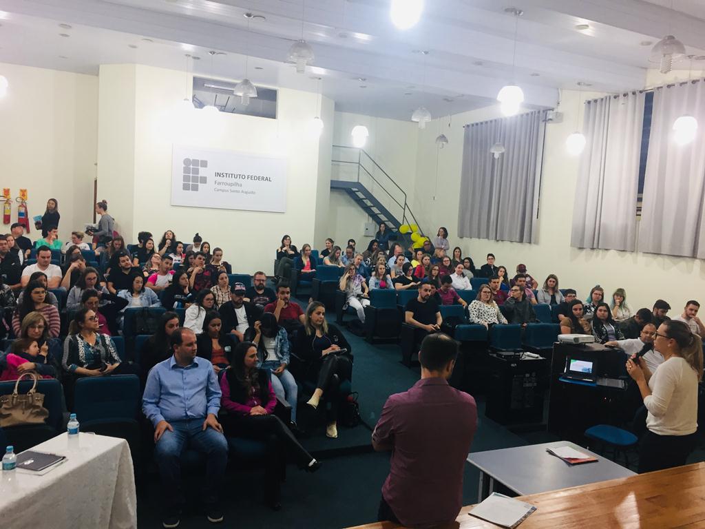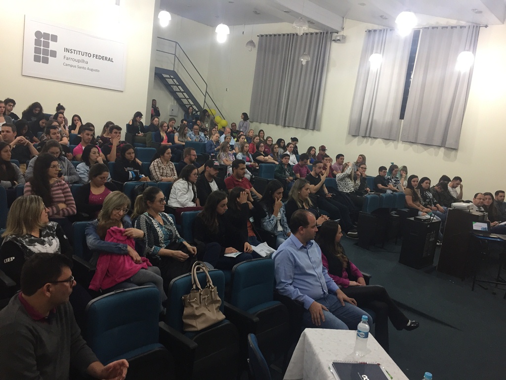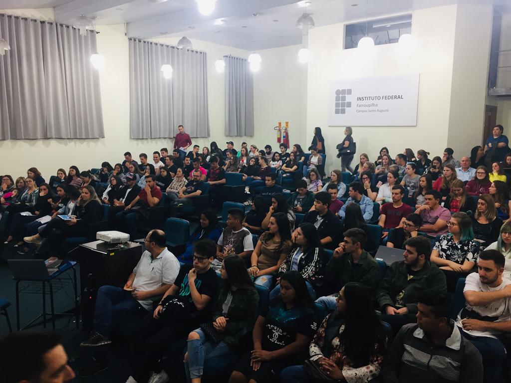 O evento contou com a presença da Diretora Geral do IFFar – Campus Santo Augusto, Verlaine Gerlach; do presidente do NIT, Cristiano Santos Rossoni; do Diretor de Pesquisa Extensão e Produção, Francisco Sperotto Flores; do coordenador de Extensão e membro do NIT, Osmar Bencke; demais integrantes do NIT, empresários locais, estudantes e servidores do IFFar – Campus Santo Augusto, estudantes e professores da Escola Estadual de Ensino Médio Senador Alberto Pasqualini – CIEP de Santo Augusto e da Escola Estadual de Ensino Médio Feliciano Jorge Alberto de Redentora.