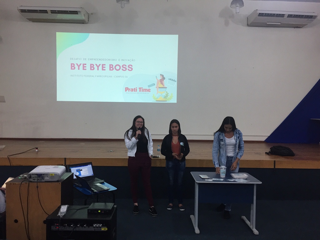 Na ocasião, três equipes apresentaram suas ideias de negócios para os trio de jurados formado pelos seguintes empresários: Liliane Cristina Goettems - sócia da empresa Avozzani Móveis Exclusivos, com loja e fábrica na cidade de Três Passos, e filial em Santo Augusto; Roberto Scherer Soares - empresário da cidade de Três Passos, sócio do Restaurante Thay (comida oriental), Mr. Pancho (cachorro quente uruguaio) e da Kaffee Bistrô (cafeteria), também já foi professor substituto de economia do IFFar – Campus Santo Augusto e mentor do Bye Bye Boss em 2018; Renato Marodin, sócio do Jornal O Celeiro e Rádio Ciranda, também representando a Associação Comercial, Industrial, Serviços e Agropecuária de Santo Augusto -ACISA, entidade muito parceira do NIT e campus em diversas ações realizadas.