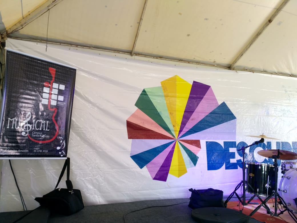 O Instituto Federal Farroupilha está participando, de 26 a 28/09, do Descubra UFSM 2019, mostrando os cursos ofertados e os projetos desenvolvidos. O Campus Santo Augusto esteve representado no evento, nesta sexta-feira, dia 27, pela Banda IF Musical, pelos servidores Marcos Santos e Ian Brites, e pelo professor Sandro Amorim de Souza.