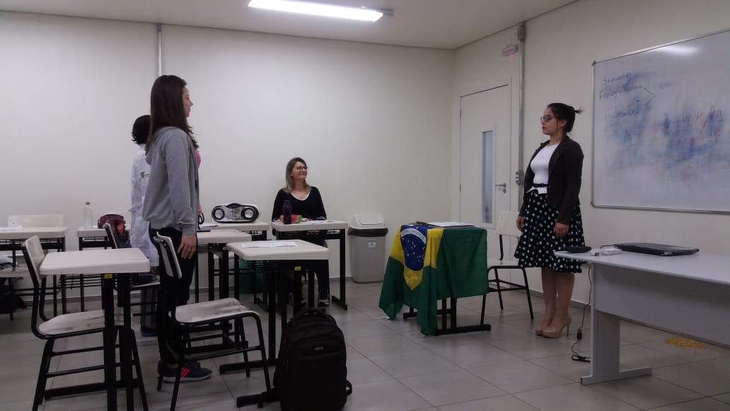 Após um estudo teórico sobre as tendências pedagógicas, que se fizeram ou se fazem presentes no contexto da educação, os alunos foram desafiados a produzir uma dramatização teatral como forma de apresentação do trabalho, mostrando o contexto da escola, a postura do professor, as metodologias aplicadas, a relação professor aluno, as formas de avaliação em cada uma das tendências pedagógicas estudadas.