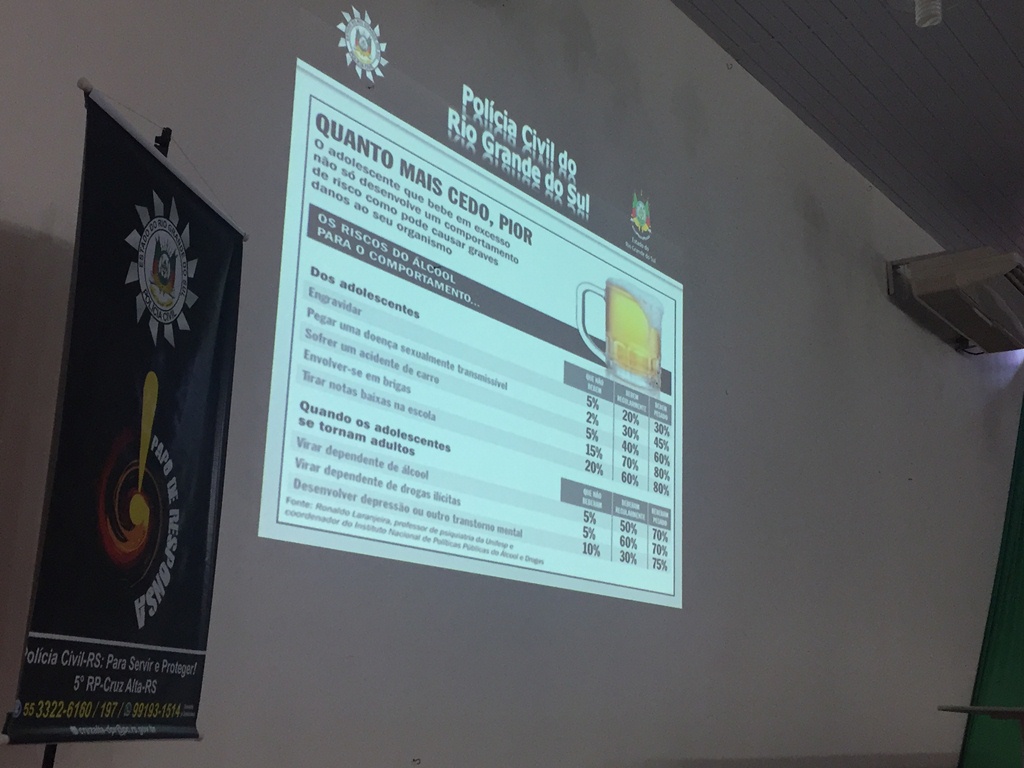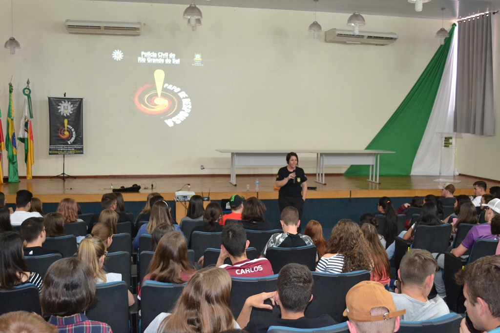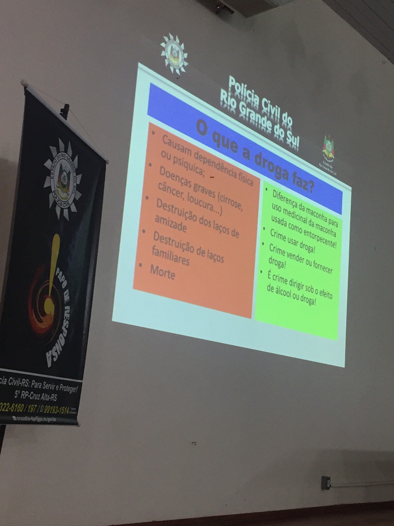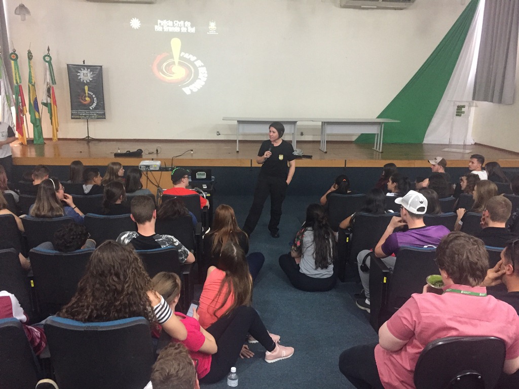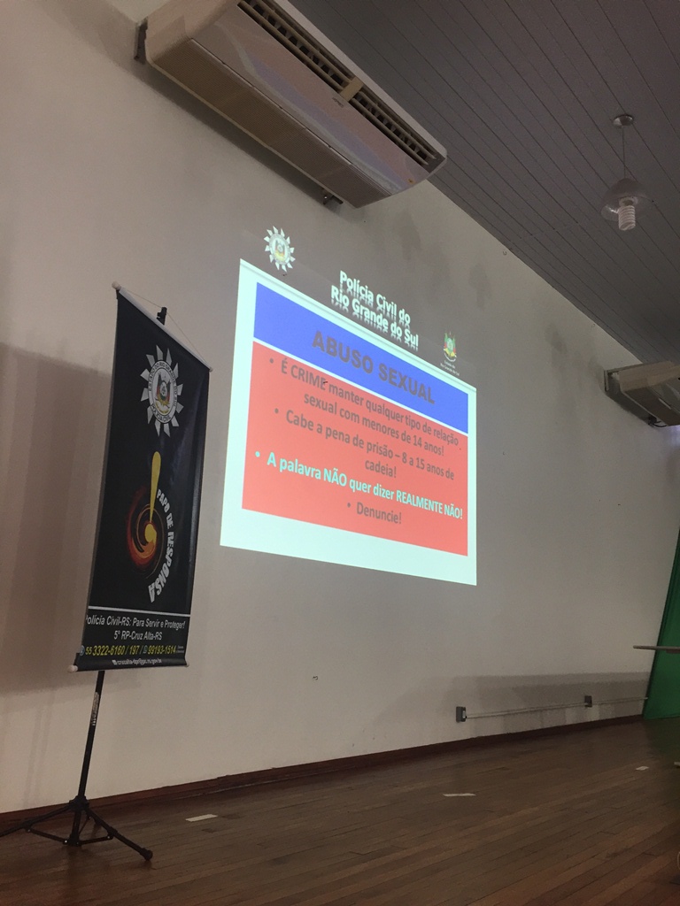 A Delegada Caroline trouxe para a instituição a palestra do “Programa Papo de Responsa”, desenvolvido desde 2016 pela Polícia Civil do Rio Grande do Sul, com atuação junto às escolas de ensino fundamental e médio, na promoção de um diálogo descontraído sobre prevenção à violência e o papel do policial na sociedade, tendo como público alvo a interlocução com crianças, adolescentes e jovens. Também é falado sobre Bullying, violência, e os atos infracionais e seus desdobramentos.