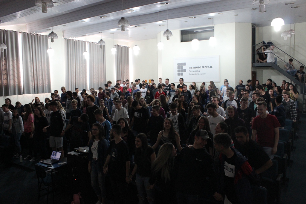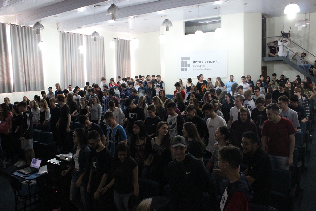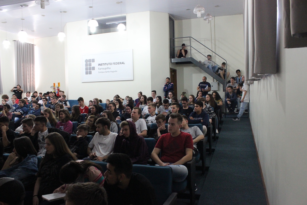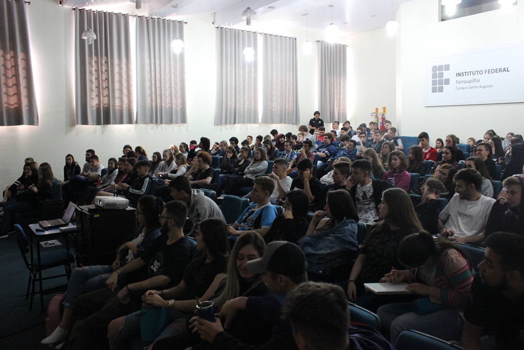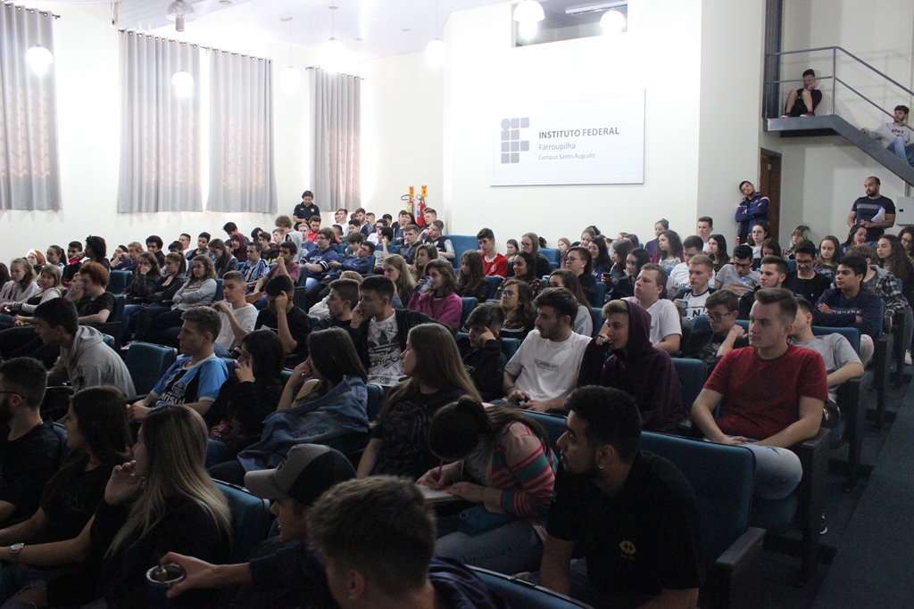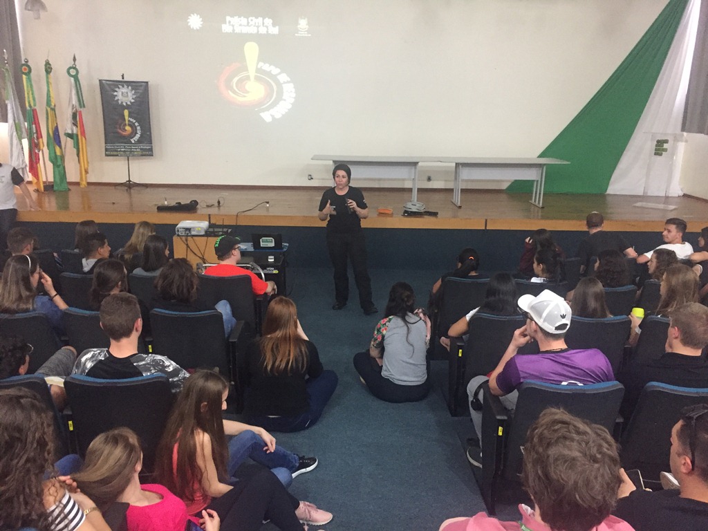 Os estudantes dos cursos técnicos integrados ao ensino médio do IFFar – Campus Santo Augusto receberam nesta quinta-feira, dia 24, a Delegada Caroline Bamberg Machado, responsável pela Delegacia Regional de Cruz Alta, para uma atividade alusiva ao Dia Nacional da Segurança e Saúde nas Escolas (10 de outubro), organizada pela Direção de Ensino, através dos setores de Assessoria Pedagógica e da Coordenação de Assistência Estudantil.