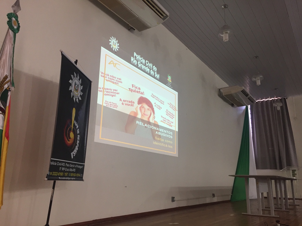 O Dia Nacional da Segurança e Saúde nas Escolas foi instituído pela Lei Federal nº 12.645 de 16 de maio de 2012, que estabeleceu a data de 10 de outubro como um dia a ser dedicado ao tratamento dessa temática no ambiente escolar. A palestra com a Delegada não pode ser realizada no IFFar – Campus Santo Augusto, no dia 10 desse mês, por compromissos anteriormente agendados por ela.