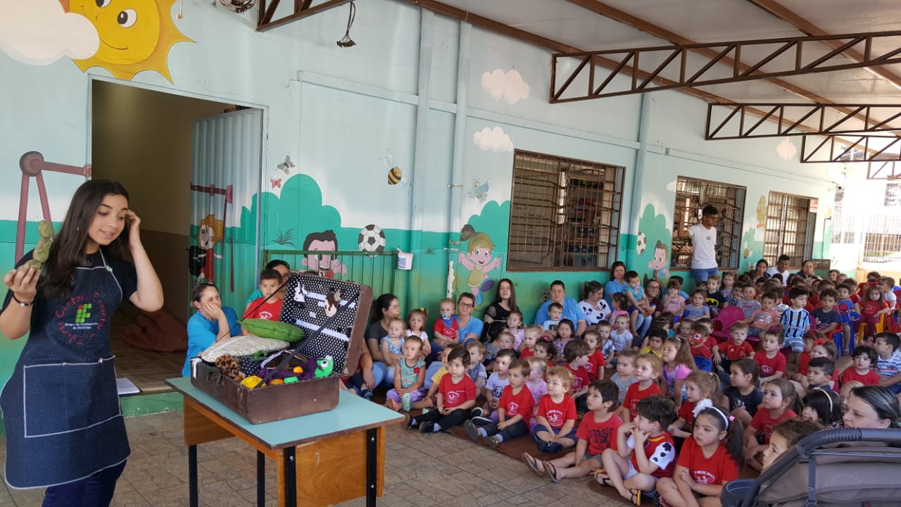 No dia 10, a contação de histórias aconteceu na Escola de Educação Infantil Pequeno Paraíso e no dia 23 na Escola de Educação Infantil Vaga-Lume. Nesses dois dias de atividades foram atendidas cerca de 400 crianças.