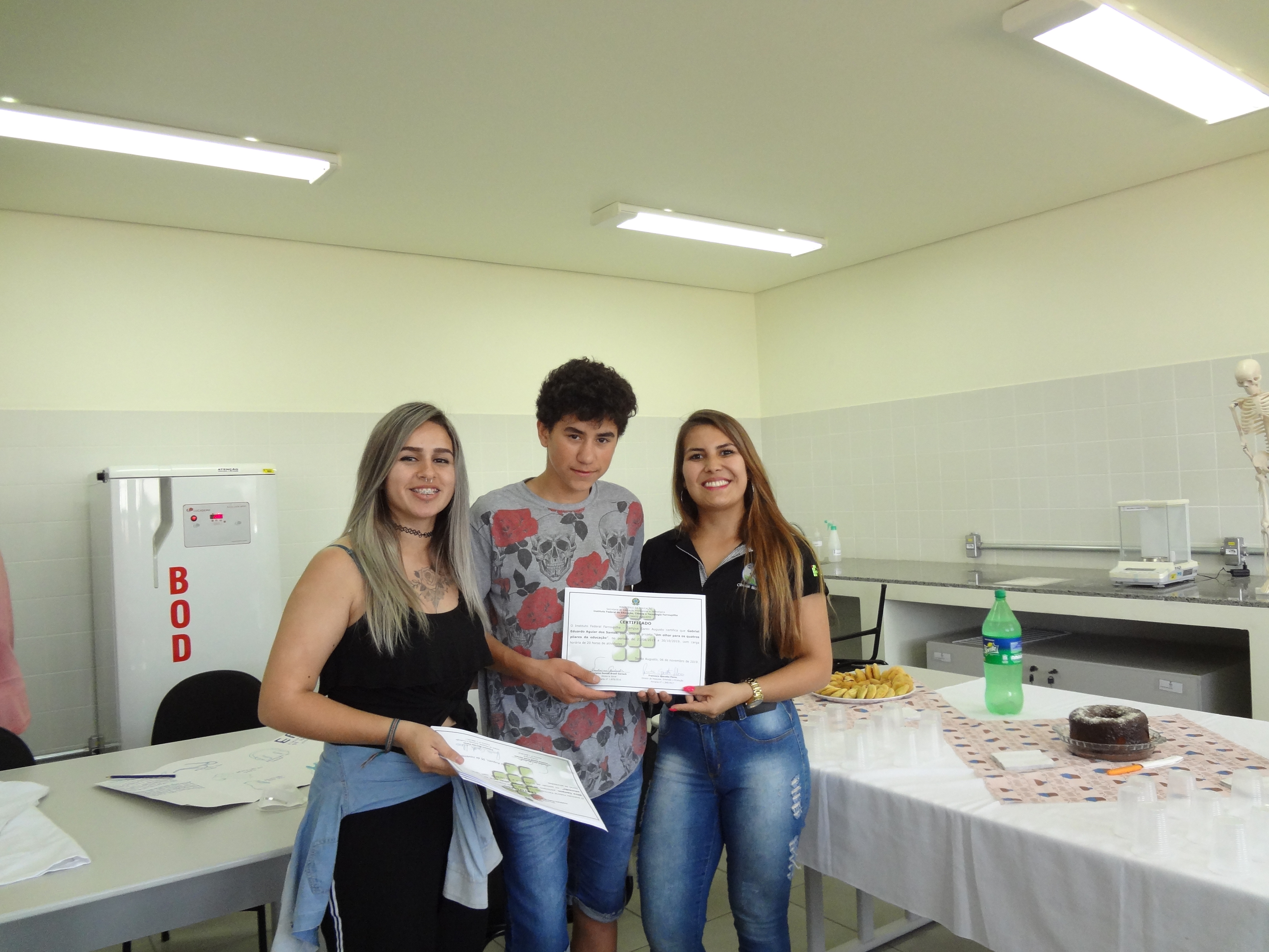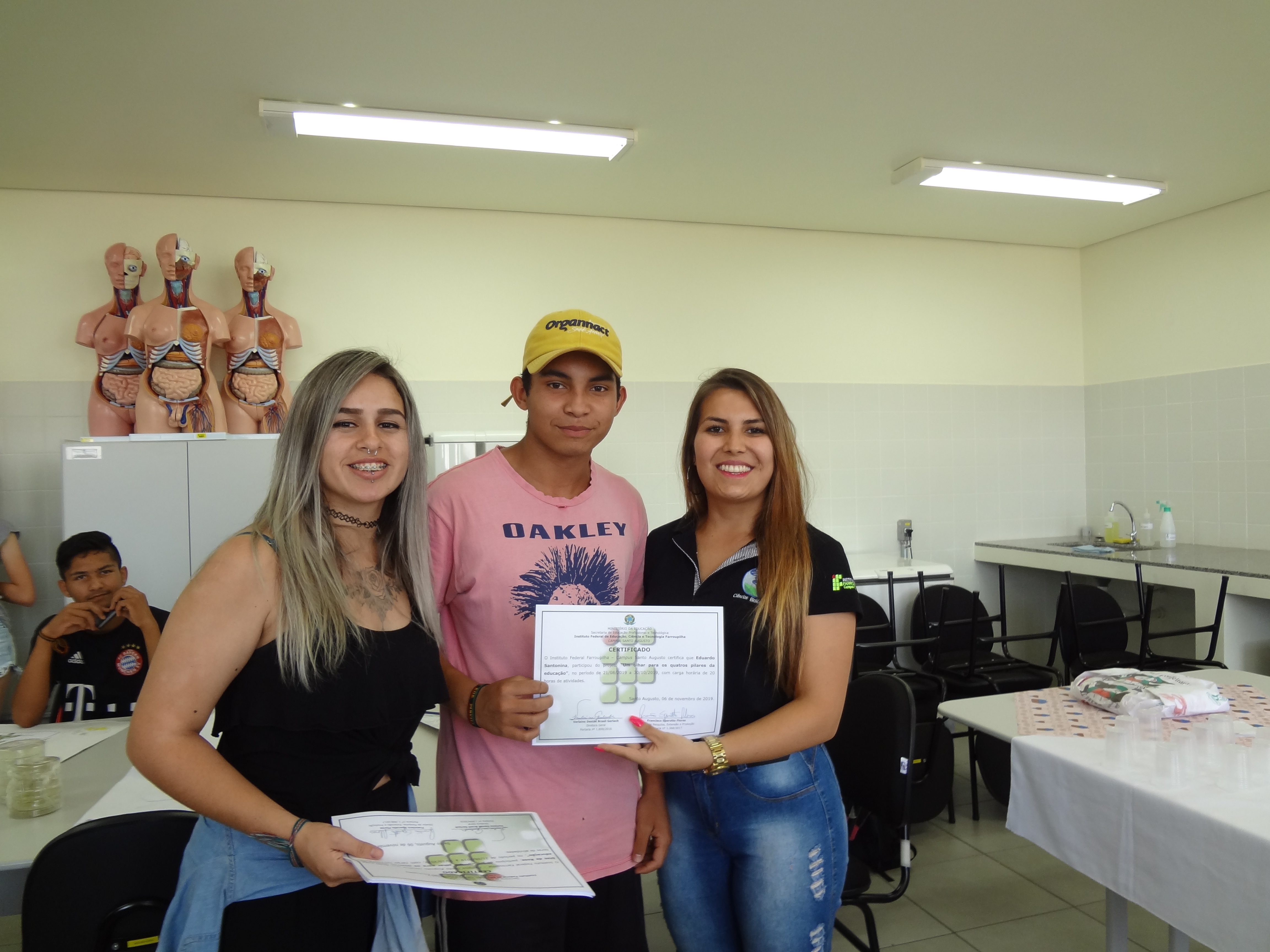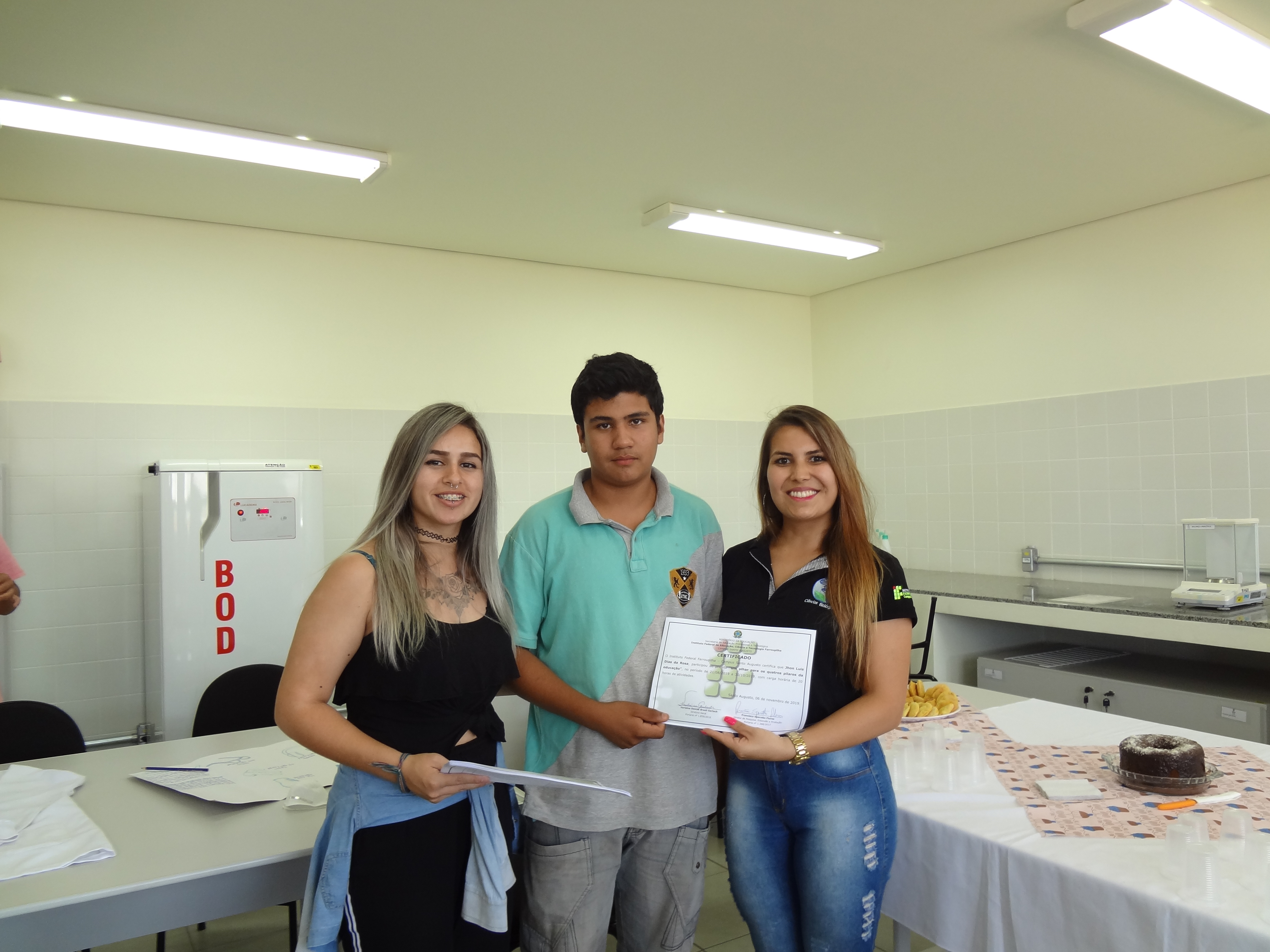 O projeto foi desenvolvido pela estudante do curso de Licenciatura em Ciências Biológicas do IFFar-Campus Santo Augusto, Diuly Fernanda Leite Viana, com supervisão da professora Camila Copetti e auxílio da estudante Larissa Silva, com o com o apoio, dos professores do curso de Licenciatura em Ciências Biológicas, Bruno Madalozzo, Inaiara Rosa Oliveira e Flávia Junqueira, e também da técnica de laboratório, Luciana Adolpho.