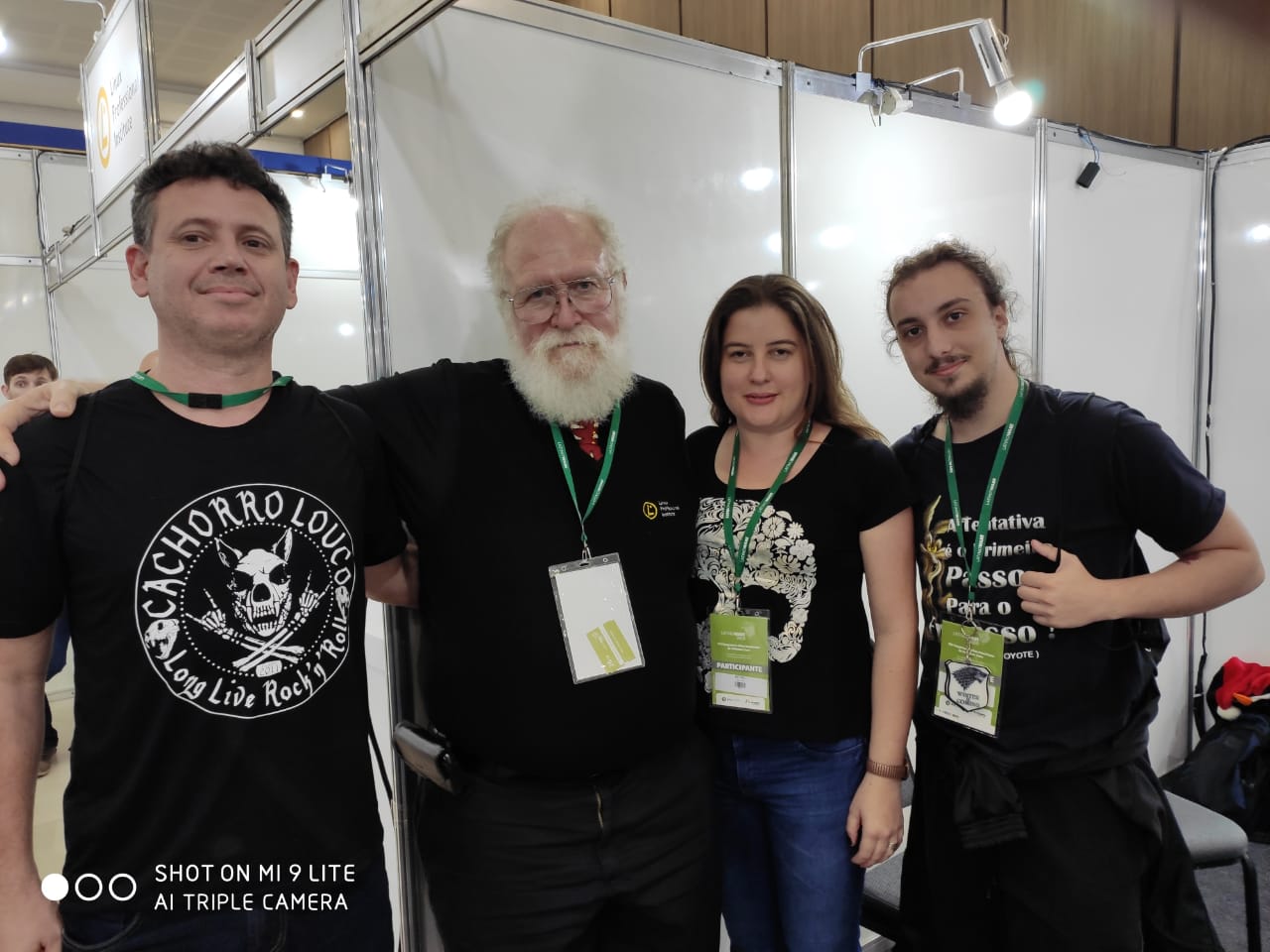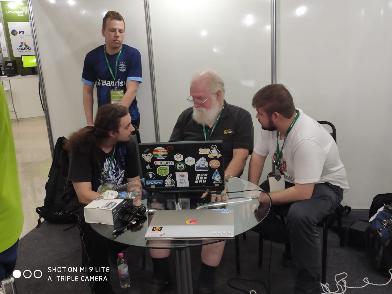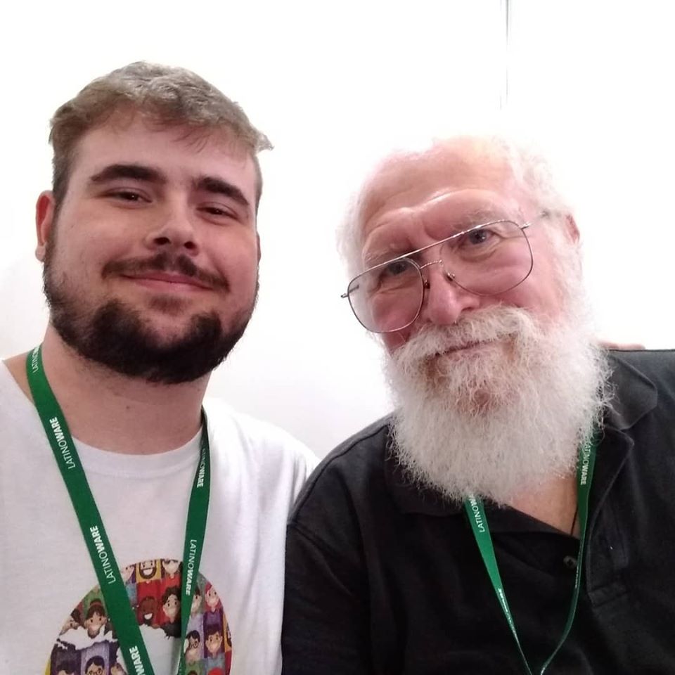 Os estudantes de Licenciatura em Computação, Uianes Biondo e Pedro Weisheimer Ribeiro, tiveram a oportunidade de conversar exclusivamente, durante algumas horas, com diretor executivo da Linux Professional Institute, John “Maddog” Hall, sobre educação, graduação, computação e ensino de programação. Para Uianes essa é a essência da LatinoWare: “Pessoas buscando compartilhar experiências e estabelecer diálogo sobre a liberdade no mundo digital”.