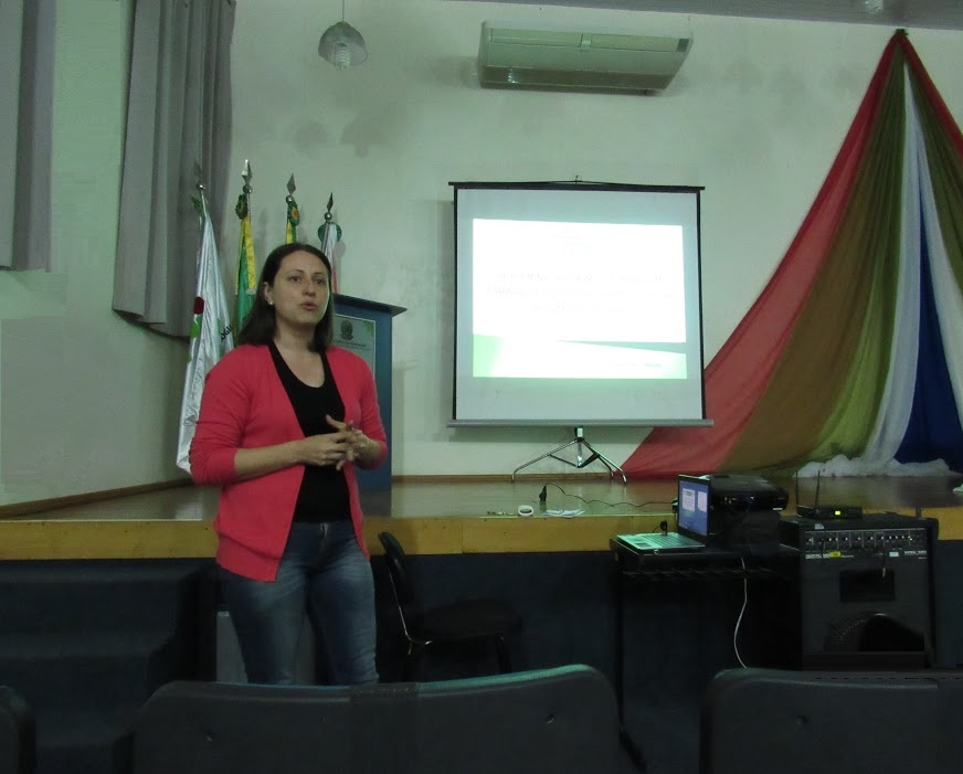 A Técnica em Laboratório, Denise Rocha, durante dua palestra.