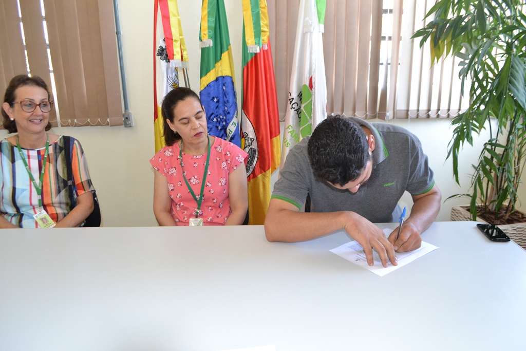O estudante da 1ª turma do curso superior de Licenciatura em Ciências Biológicas do IFFar – Campus Santo Augusto, Leonardo Bahry Escobar, colou grau em gabinete na tarde de ontem.