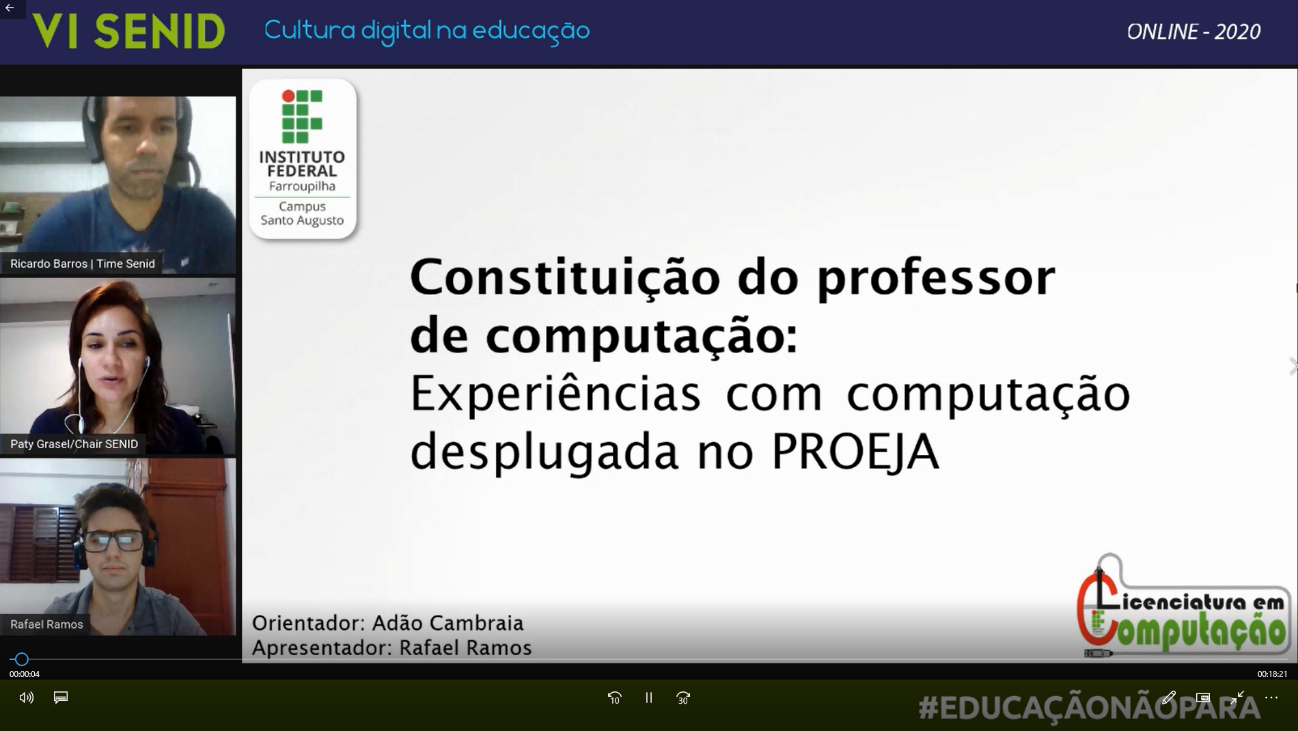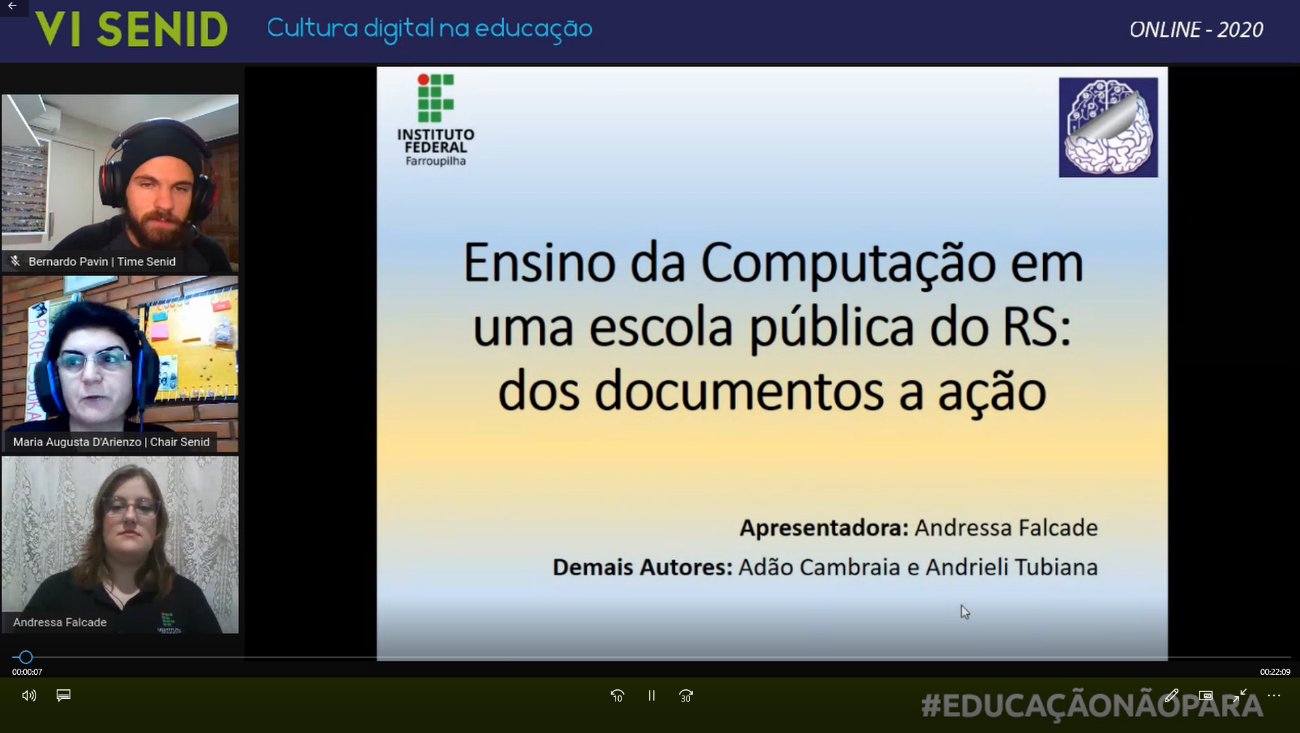 De 22 a 24 de abril foi realizado o VI Senid - Seminário Nacional de Inclusão Digital, pela primeira vez totalmente online em virtude da pandemia de Covid 19, contando com mais de 5 mil participantes. O Senid é organizado pela Universidade de Passo Fundo – UPF, com o apoio de outras instituições de ensino, dentre elas o IFFar, através do Campus Santo Augusto.