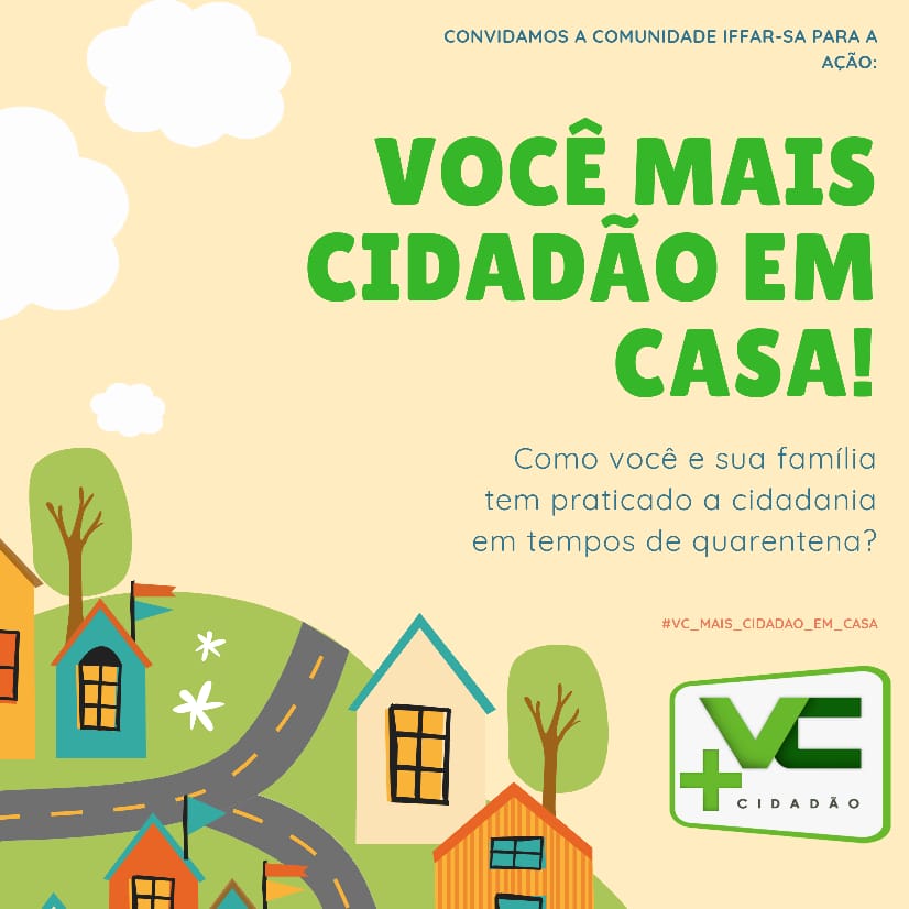 A primeira ação, chamada #vc_mais_cidadao_em_casa, consiste em estimular os estudantes e todos os demais membros da comunidade escolar, a realizar ações de cidadania em sua casa e postar vídeos e fotografias nas redes sociais do Projeto Vc + Cidadão, utilizando a hastag #vc_mais_cidadao_em_casa